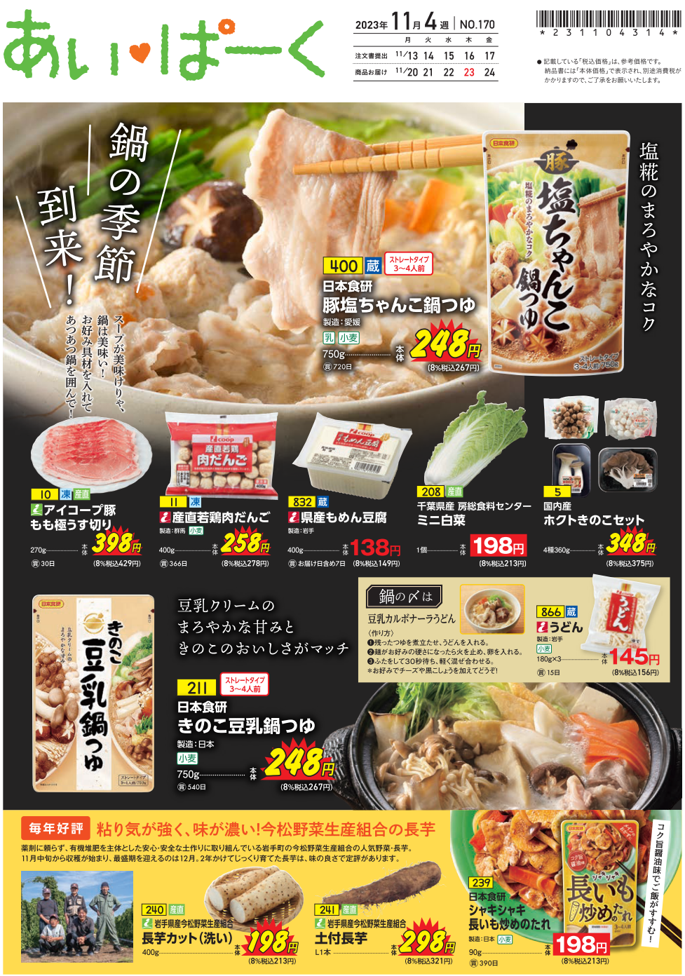 11月4週号あいぱーく 「鍋の季節到来!」「コープの冬ギフト」