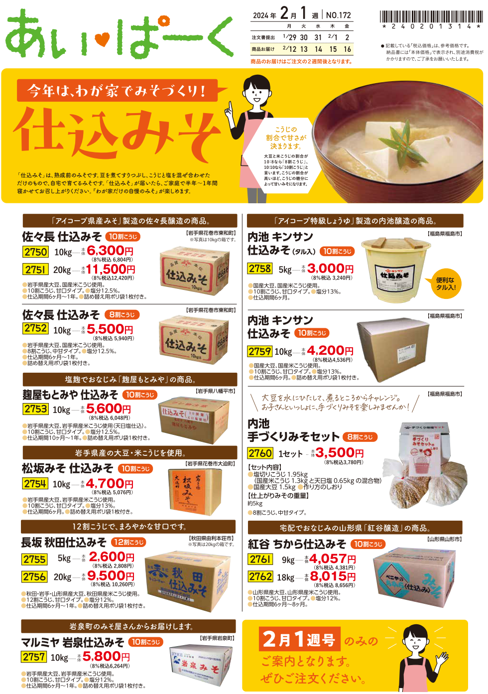 2月1週号あいぱーく 今年は、わが家でみそづくり!「仕込みそ」