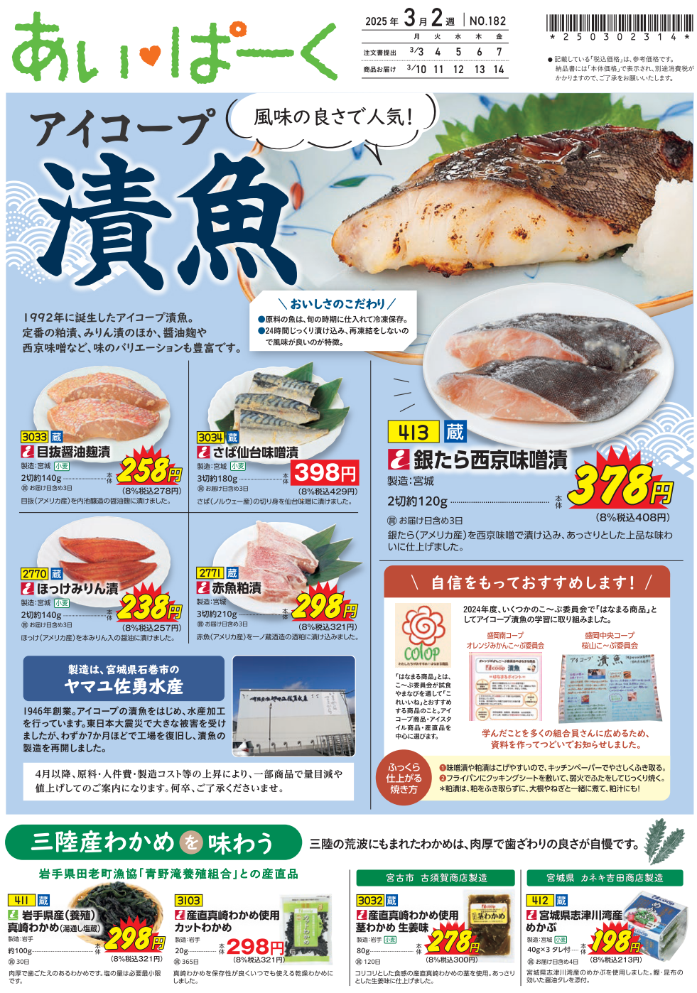 3月2週号あいぱーく 風味の良さで人気!「アイコープ 漬魚」