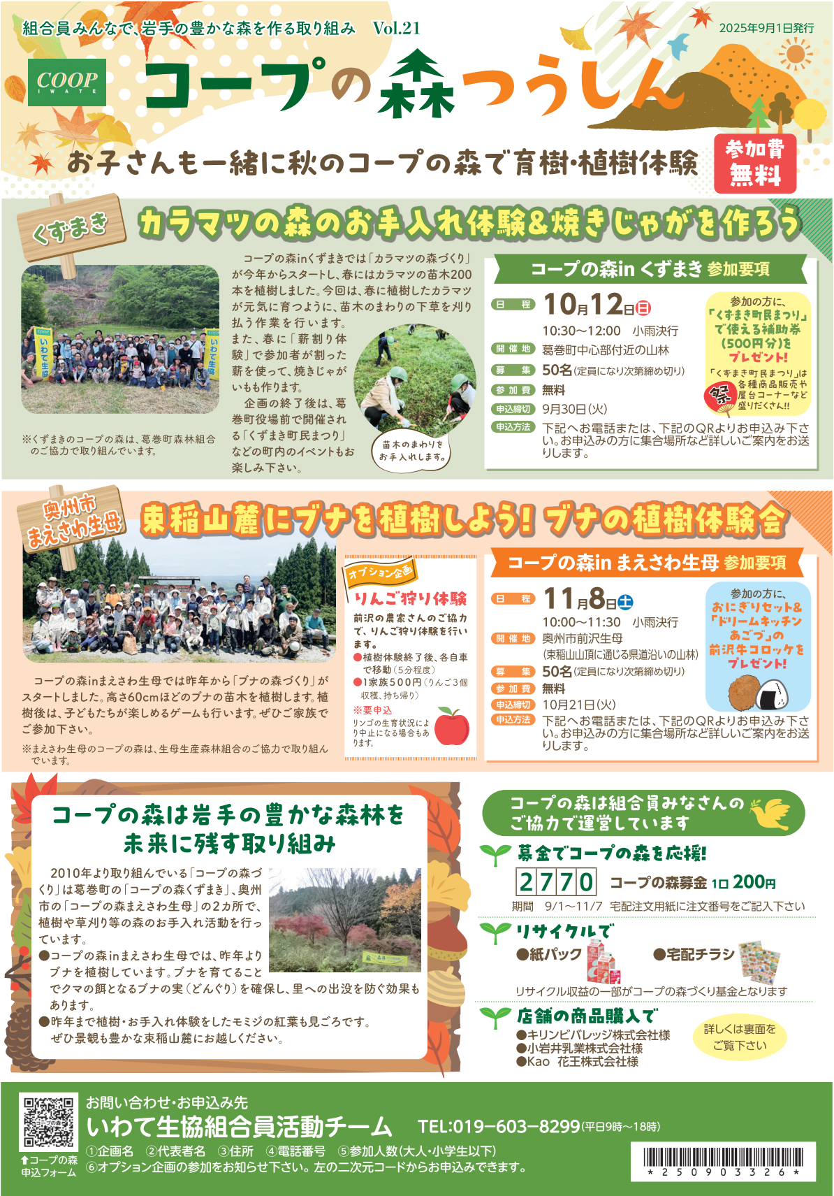 9月3週号 コープの森つうしん「お子さんも一緒にコープの森で育樹・植樹体験」