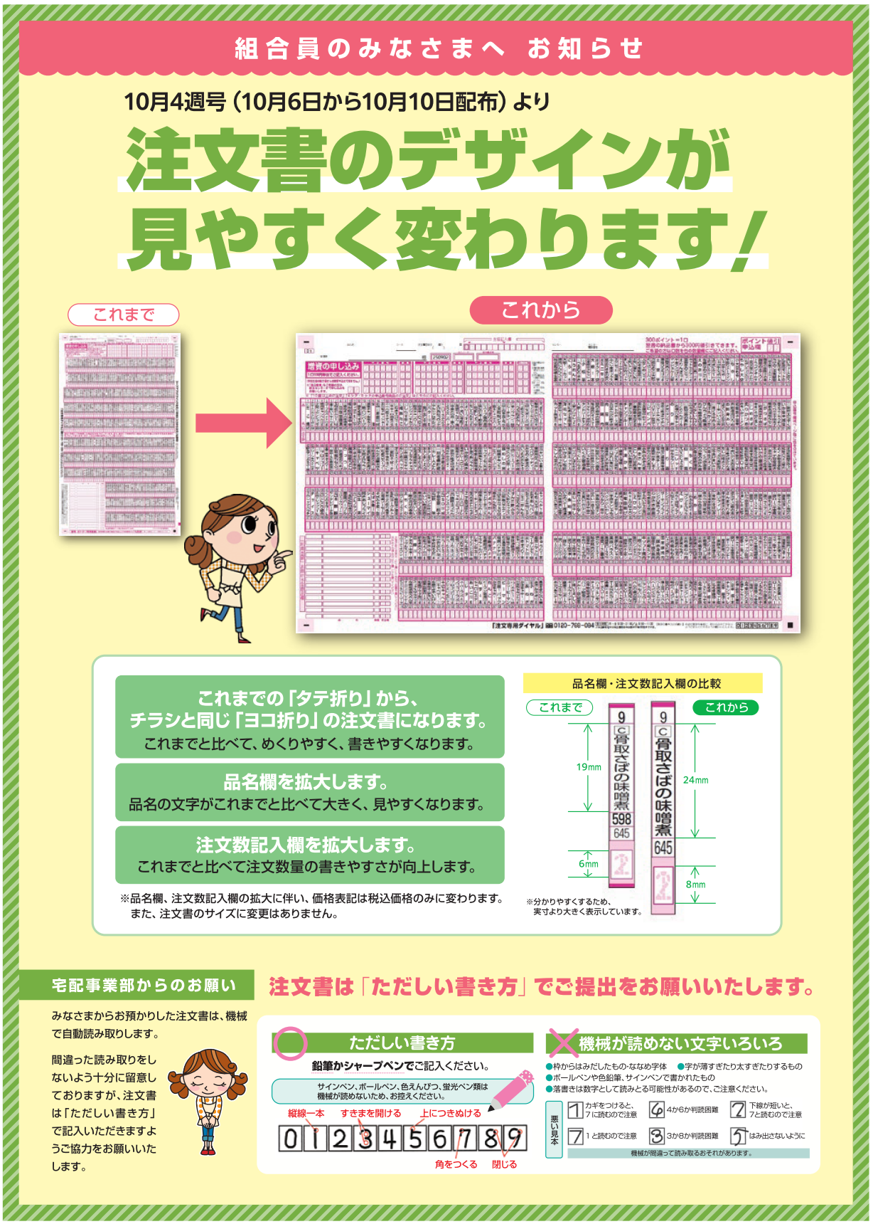 10月4週号より宅配注文書のデザインが見やすく変わります!