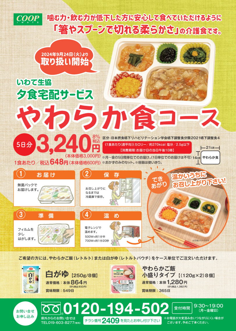 2024年9月24日より「やわらか食コース」の取り扱いを開始します!