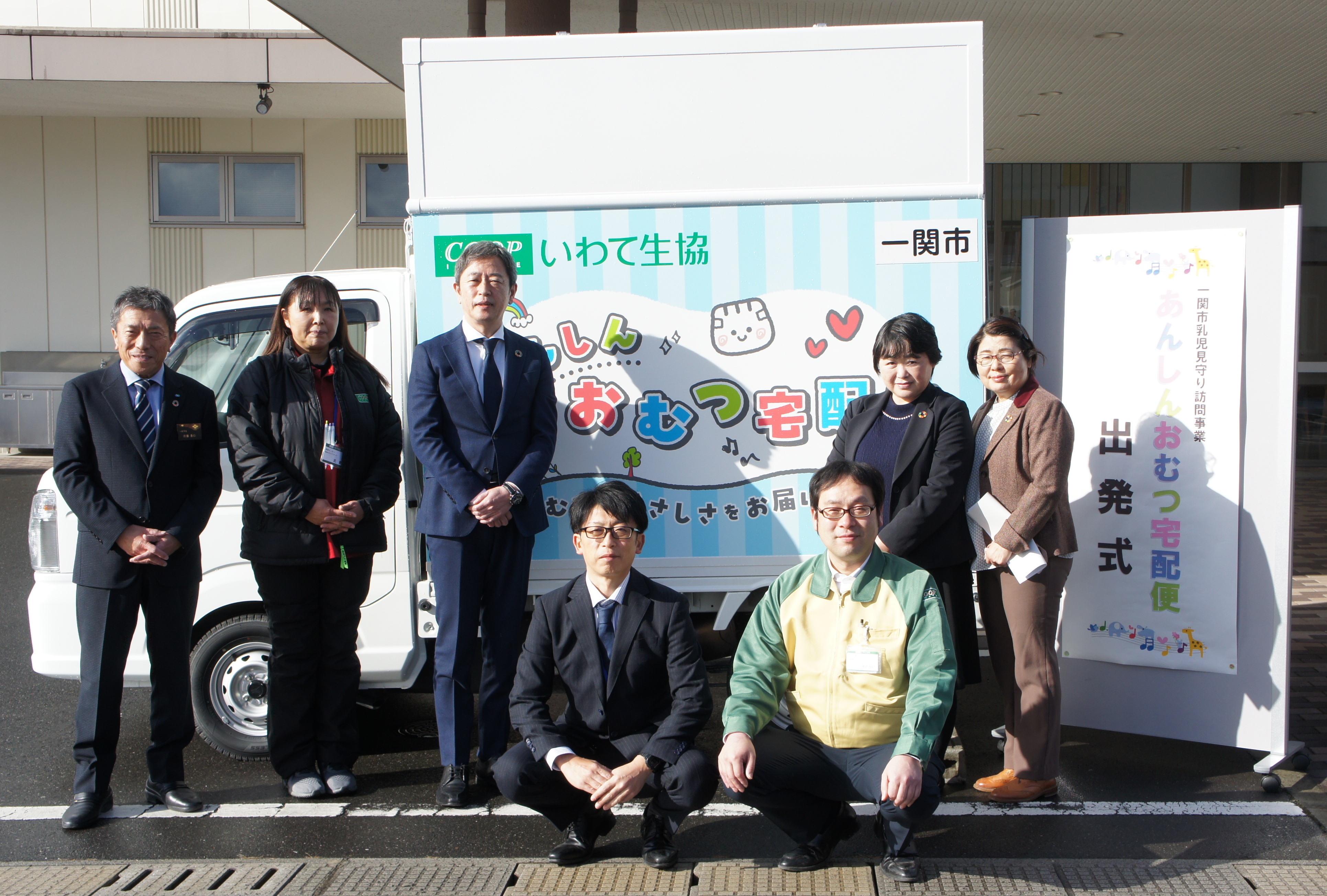 一関市「乳児見守り訪問事業(あんしんおむつ宅配便)」出発式開催