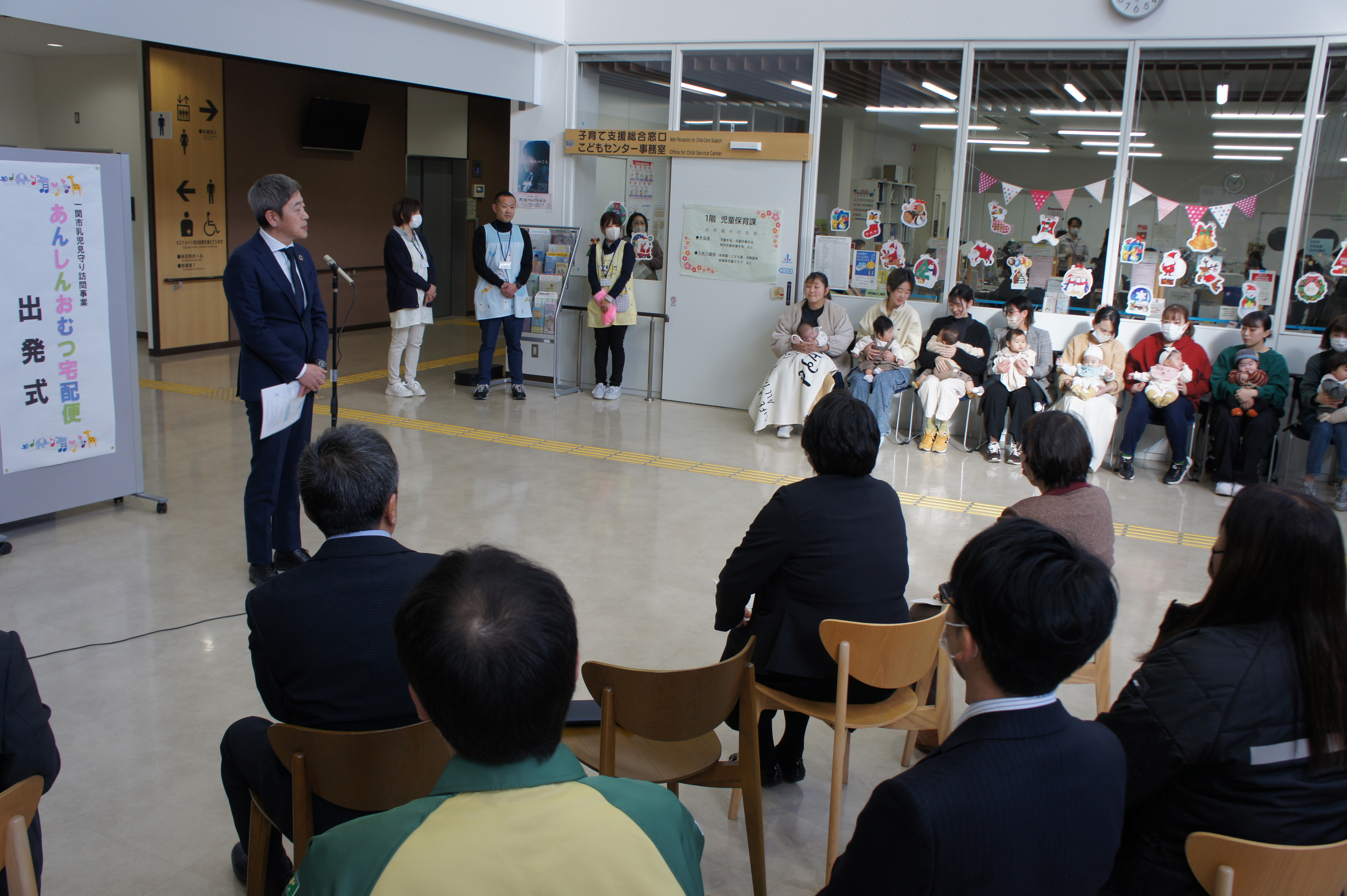 12月4日、一関保健センターで「乳児見守り訪問事業(あんしんおむつ便)」の出発式が開催されました。