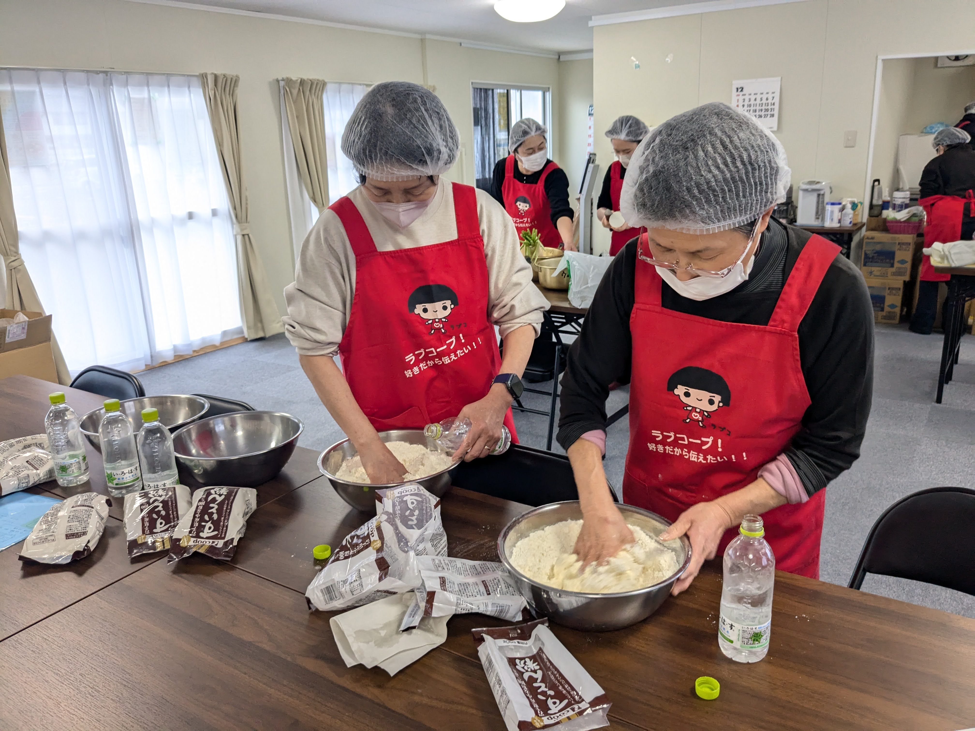 アイコープすいとん粉を使って、手づくりのひっつみをふるまいました。