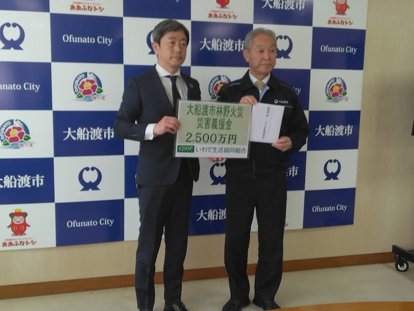 募金は4月10日、大船渡市に義援金として贈呈しました。