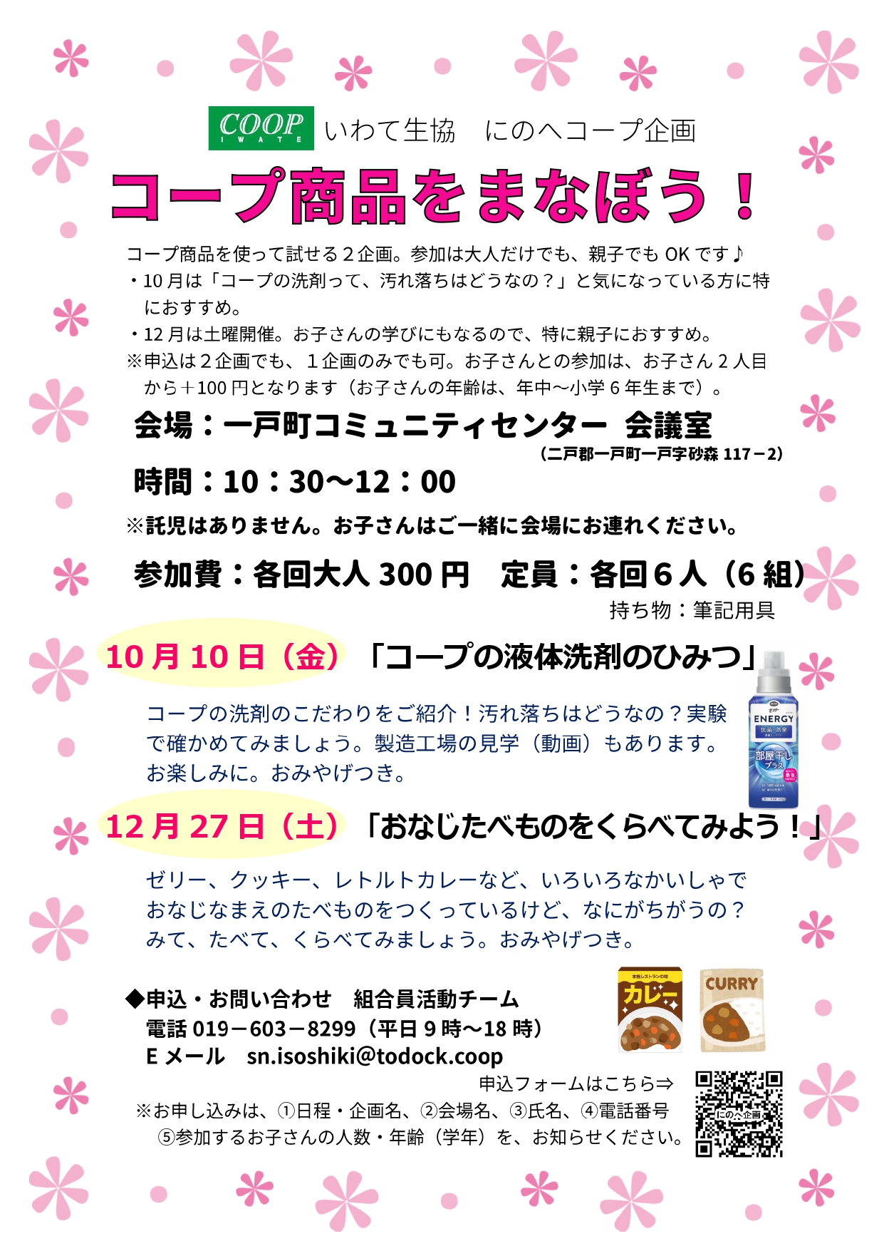 > 【参加募集】コープ商品をまなぼう!(10月10日、12月27日 一戸町)