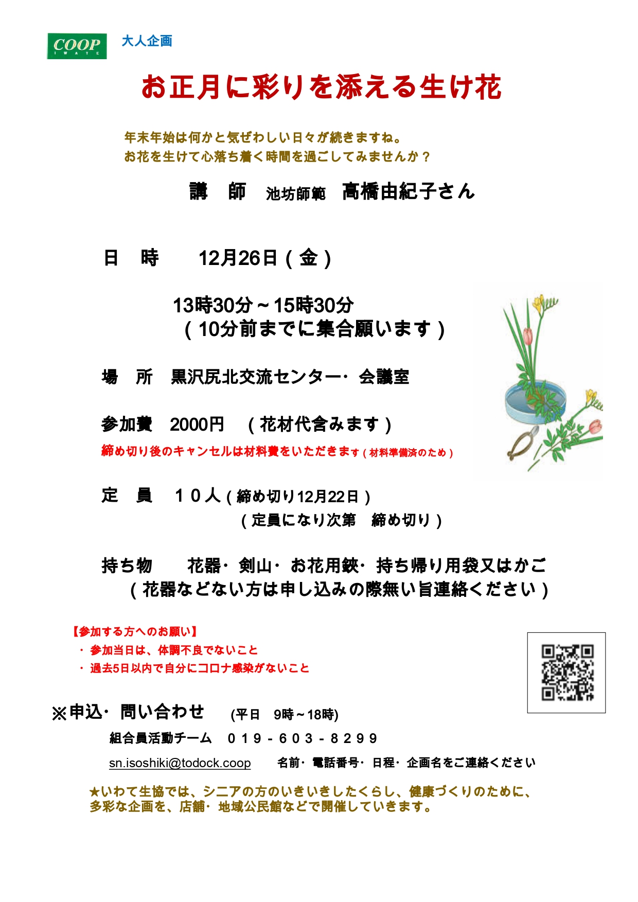 12月26日(金)お正月に彩りを添える生け花[北上市さくらホール]