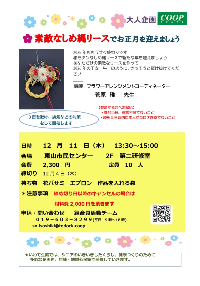 12月24日(水)彩りをまとう私だけのしめ飾り[コープ介護・福祉センターあい]