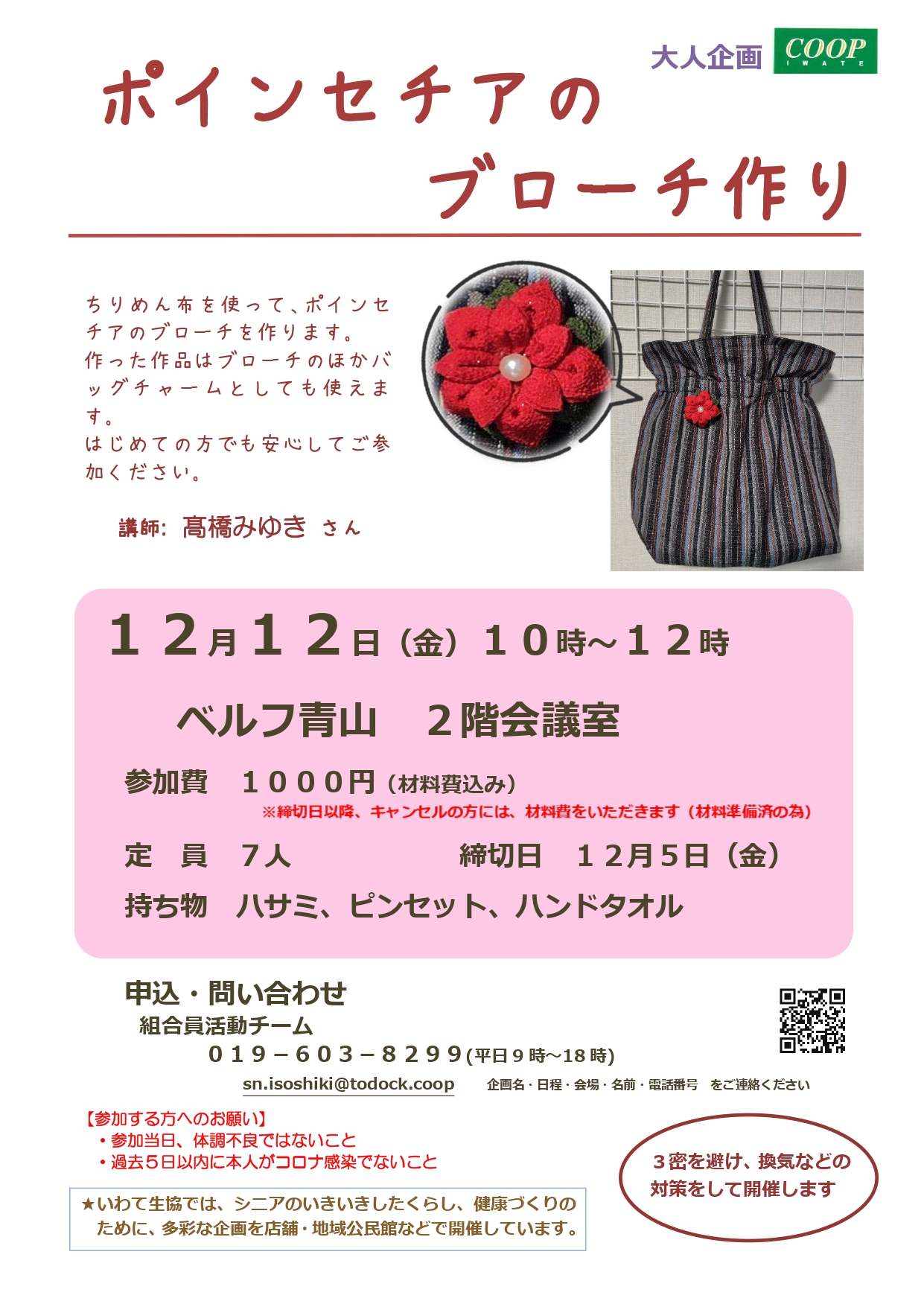 12月12日(金)ポインセチアのブローチ作り[ベルフ青山]