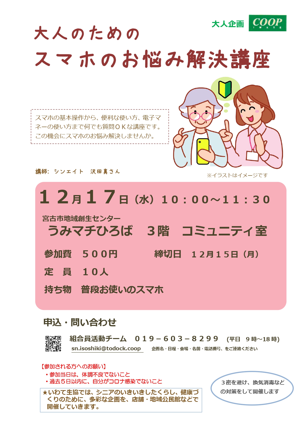12月17日(水)大人のためのスマホお悩み解決講座[宮古市うみマチひろば]