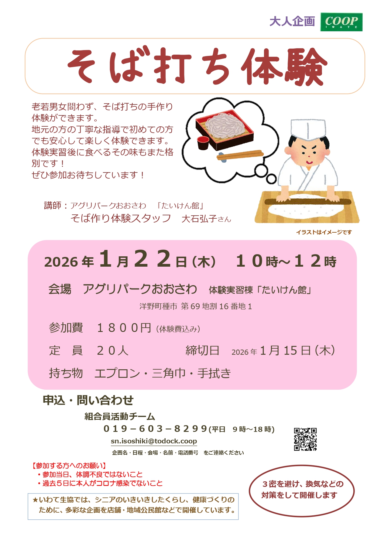 1月22日(木)そば打ち体験[洋野町アグリパークおおさわ]