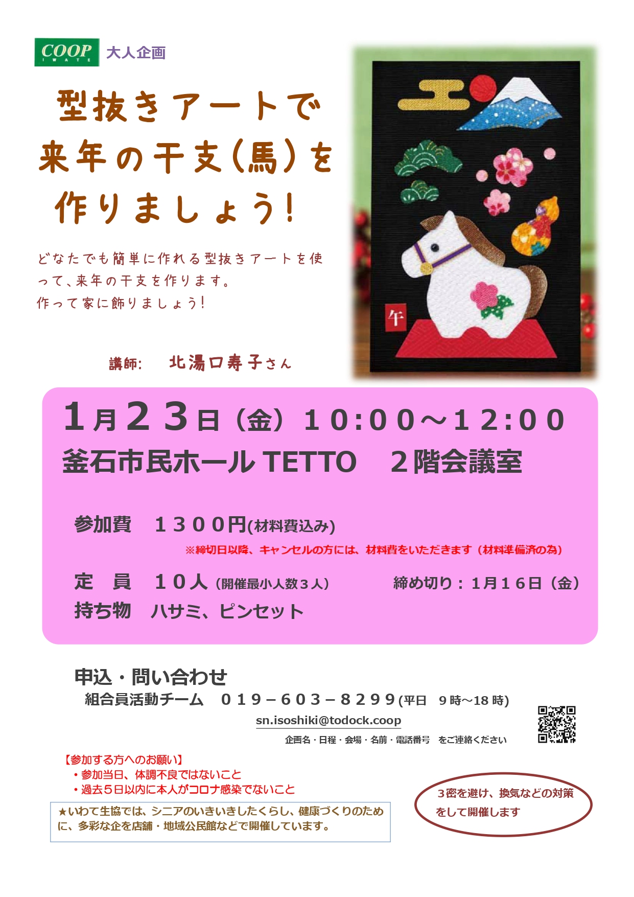 1月23日(金)型抜きアートで2026年の干支(馬)を作りましょう[釜石市民ホールTETTO]