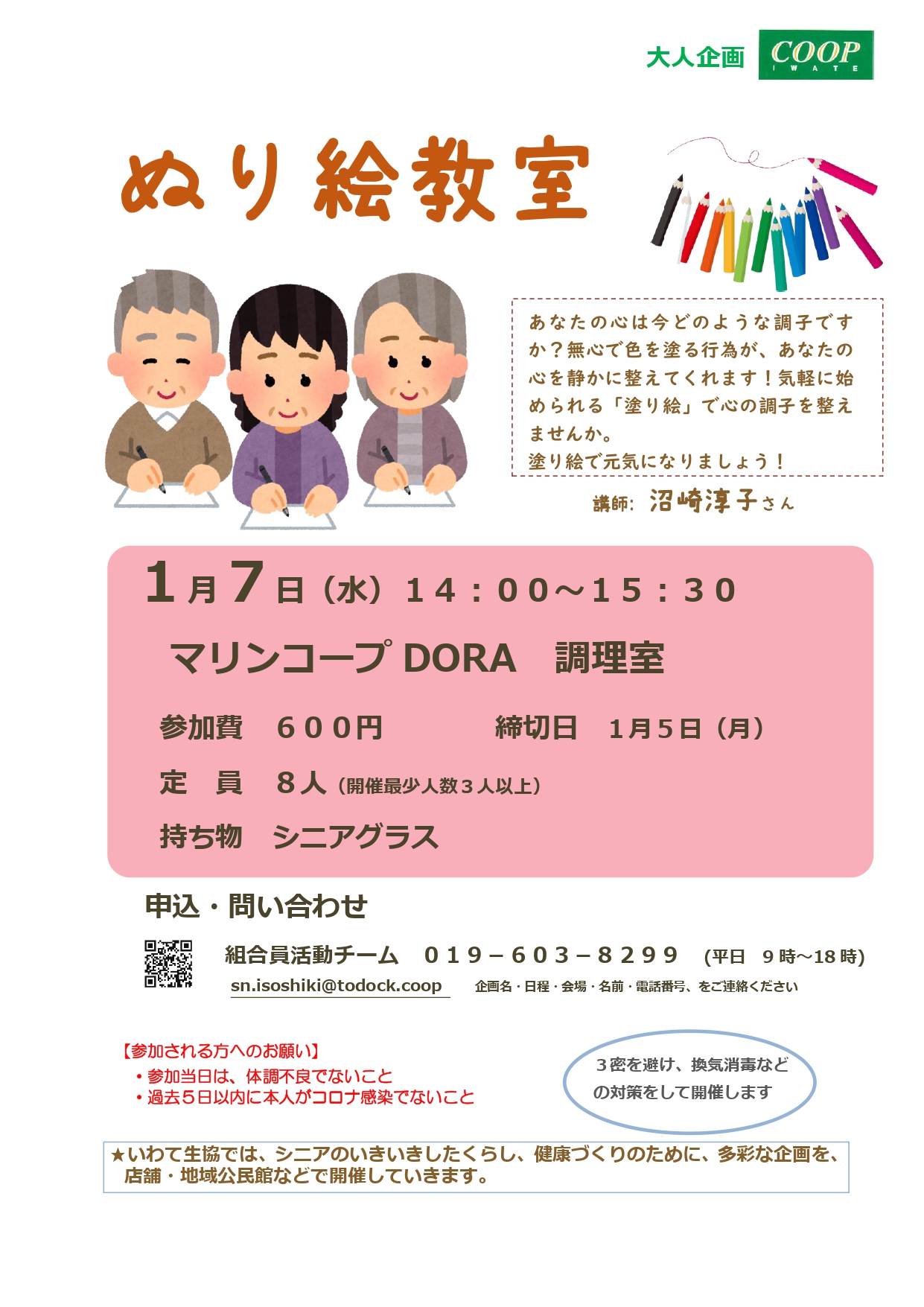 1月7日(水)塗り絵教室[マリンコープDORA]