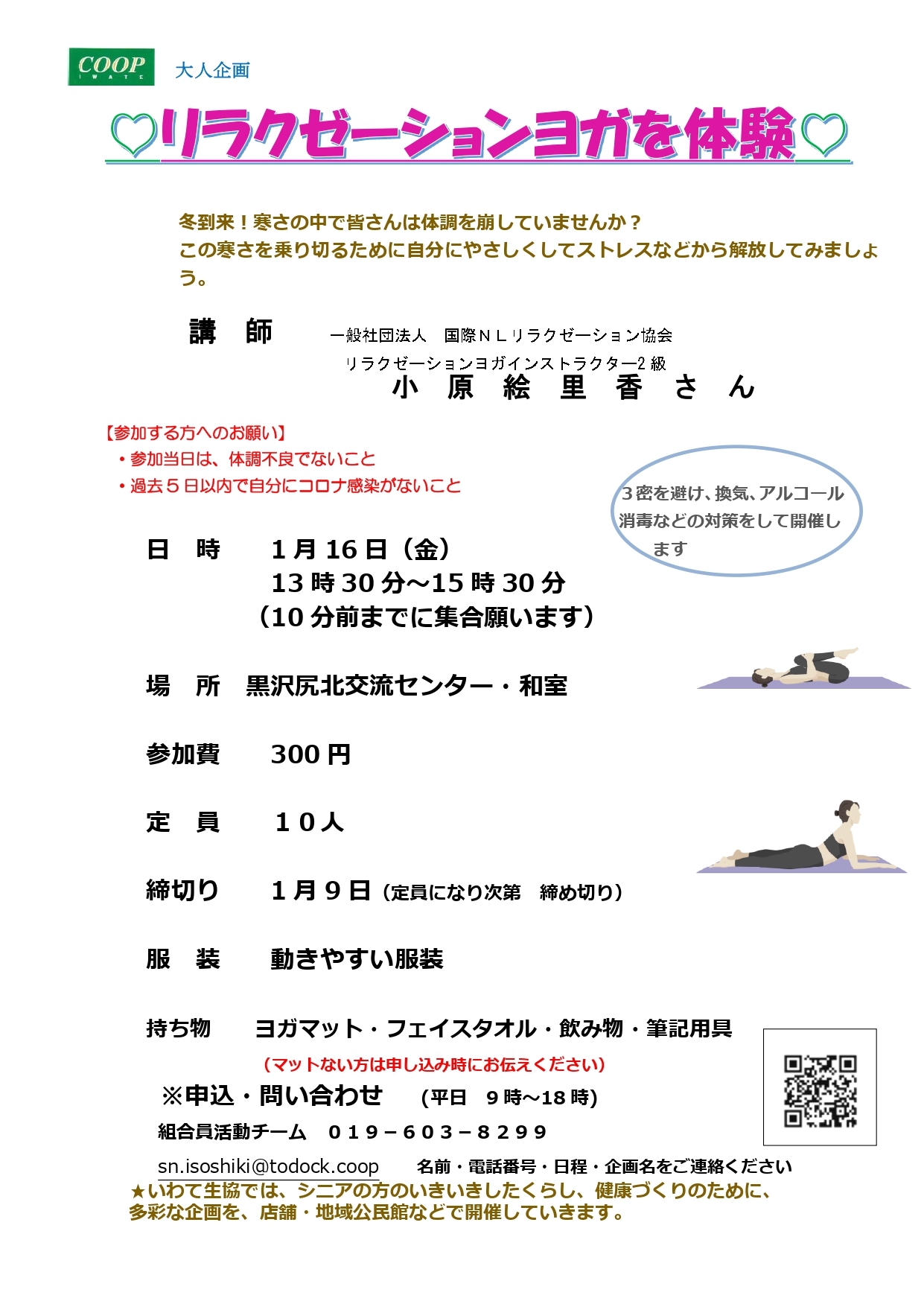 1月16日(金)リラクゼーションヨガを体験[黒沢尻北交流センター]