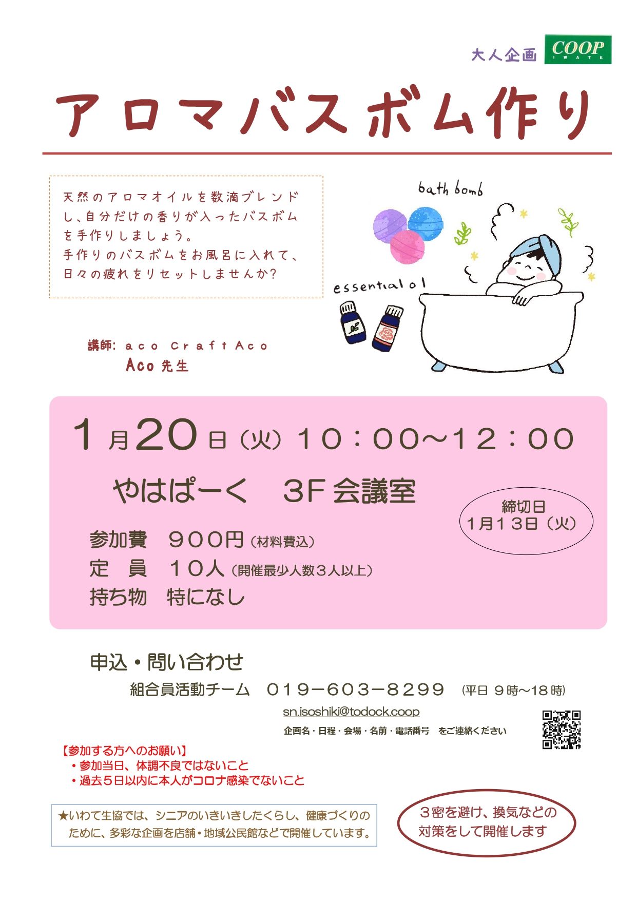 1月20日(火)アロマバスボム作り[矢巾町やはぱーく]