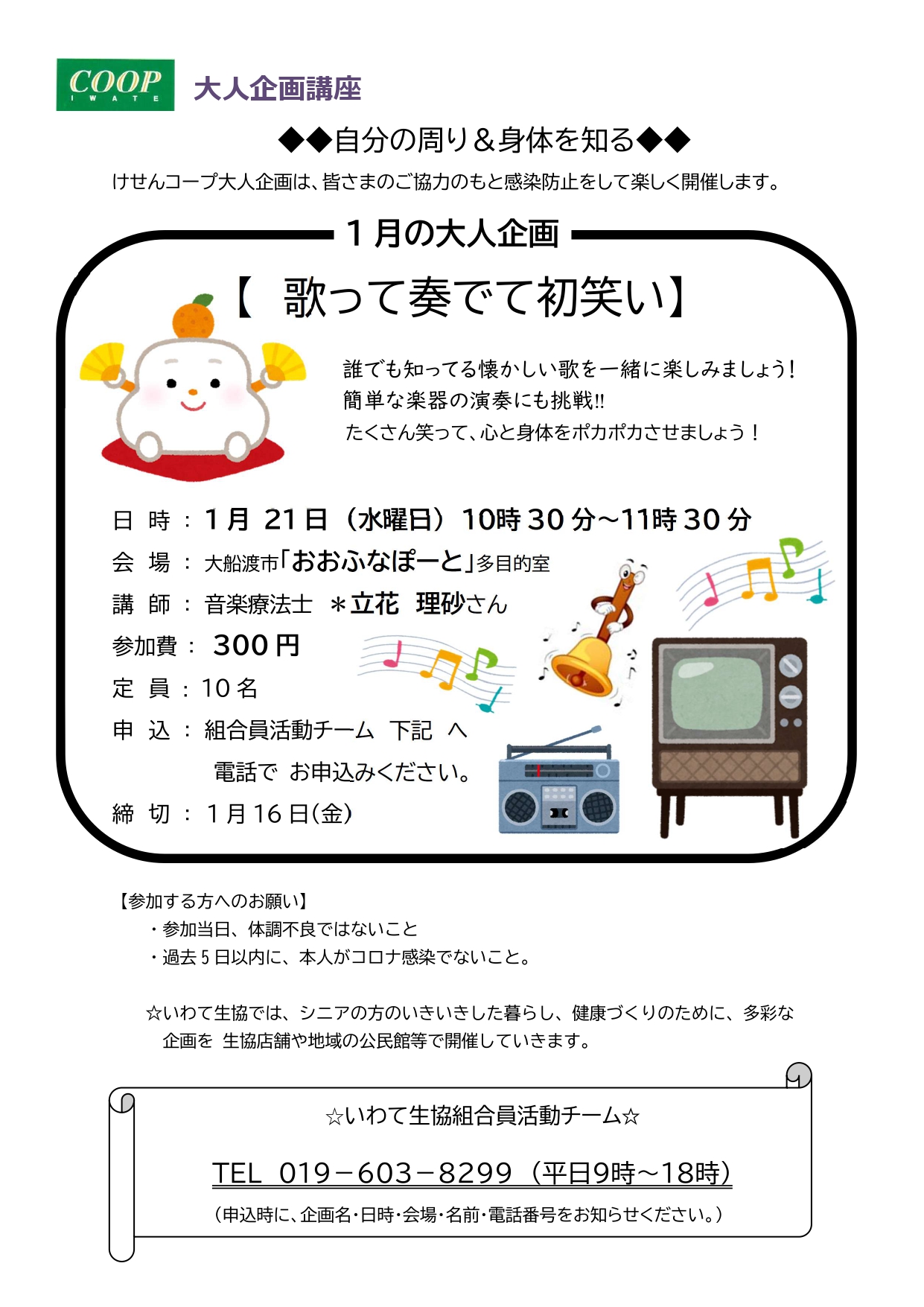 1月21日(水)歌って奏でて初笑い[大船渡市おおふなぽーと]