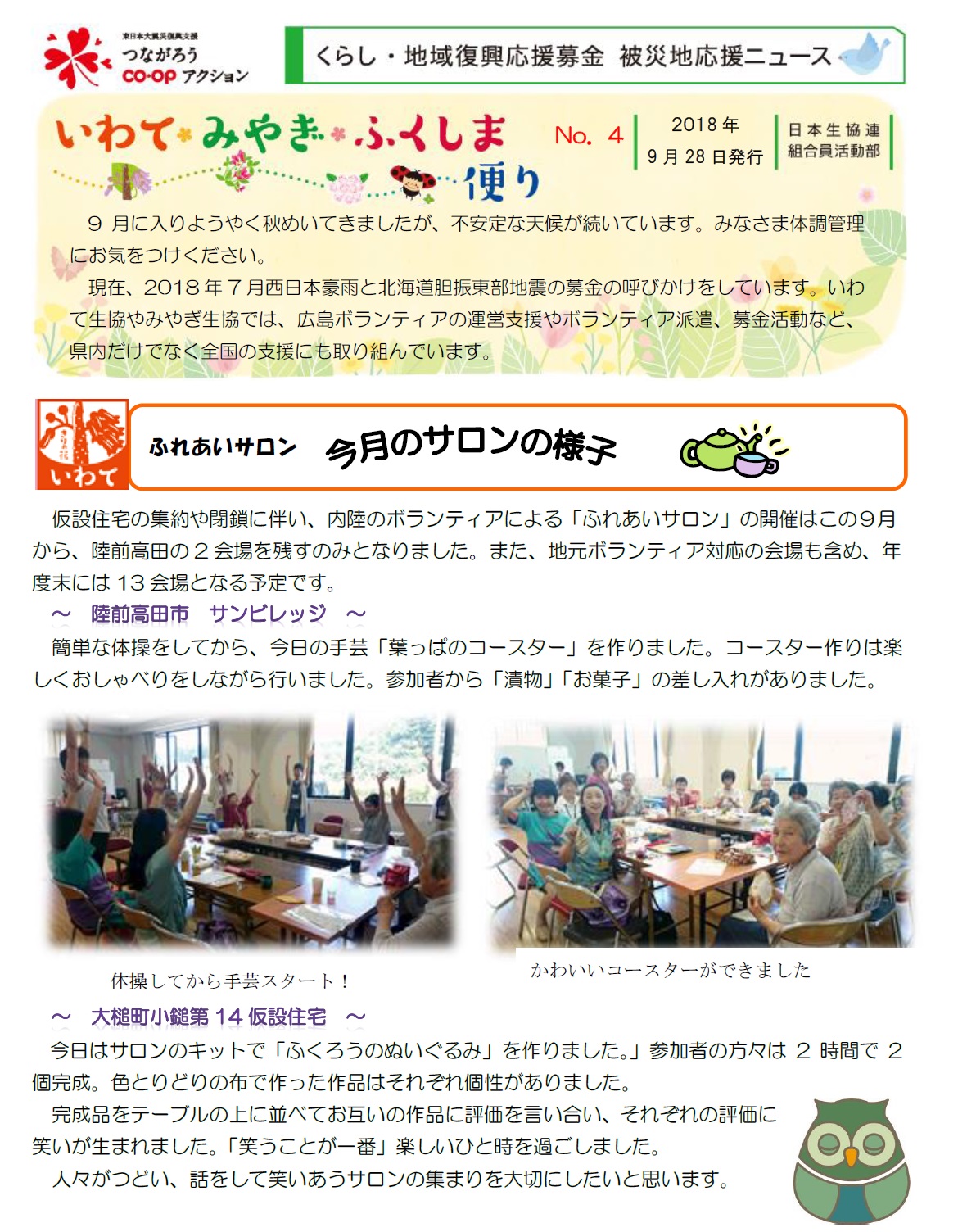 > 「いわて・みやぎ・ふくしま便り №4」◆2018年9月