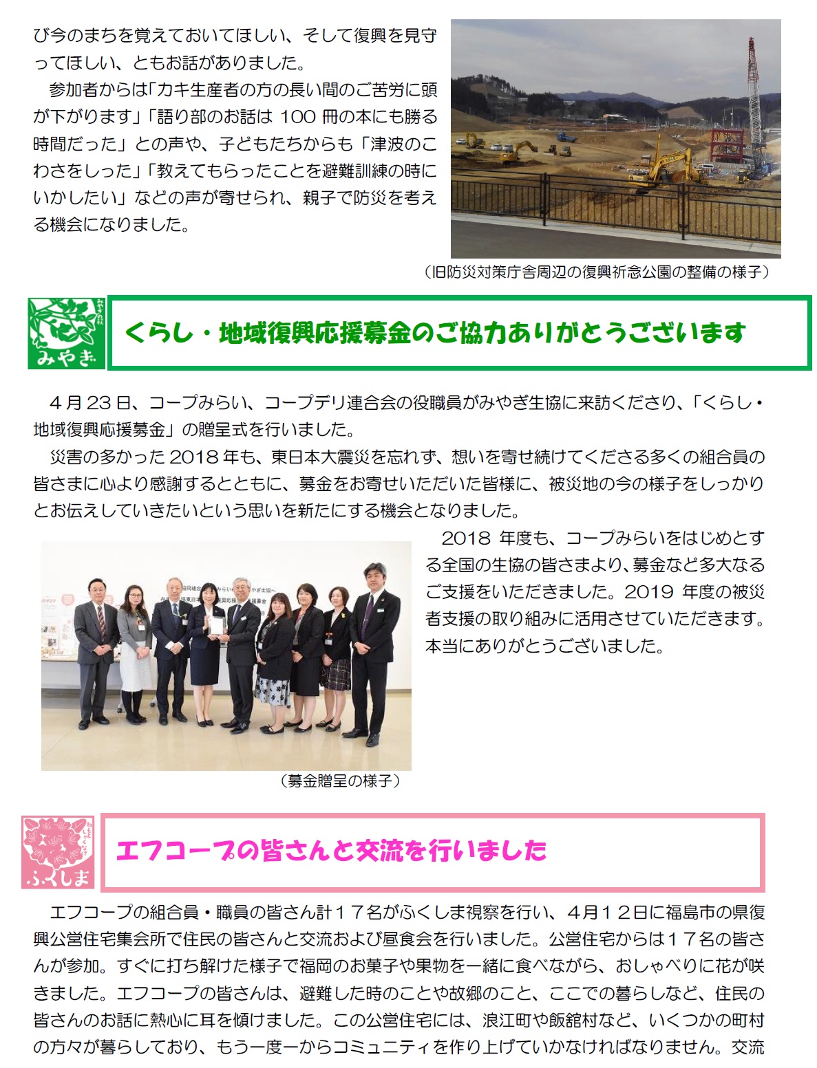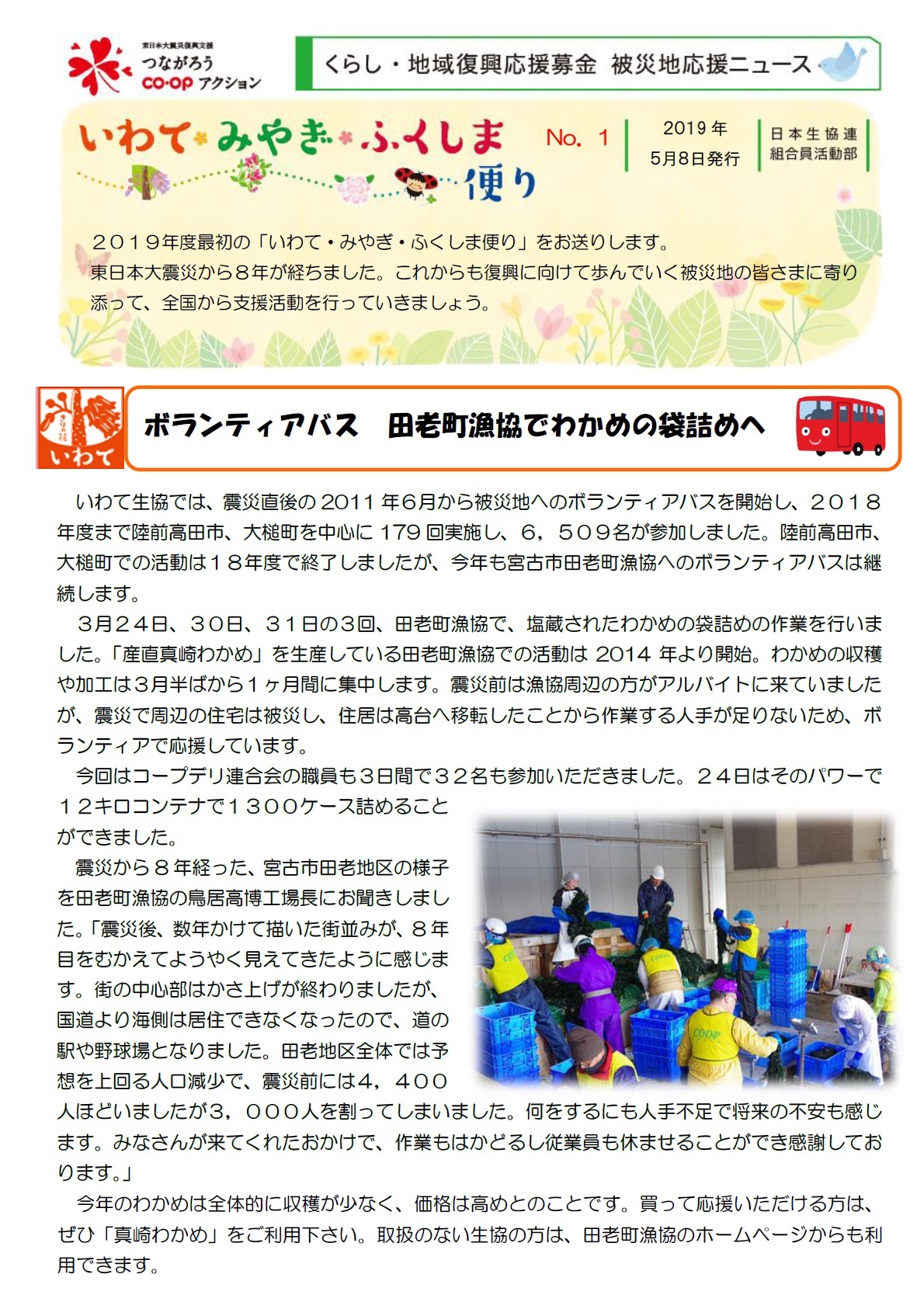 > いわて・みやぎ・ふくしま便り 2019年度No.1