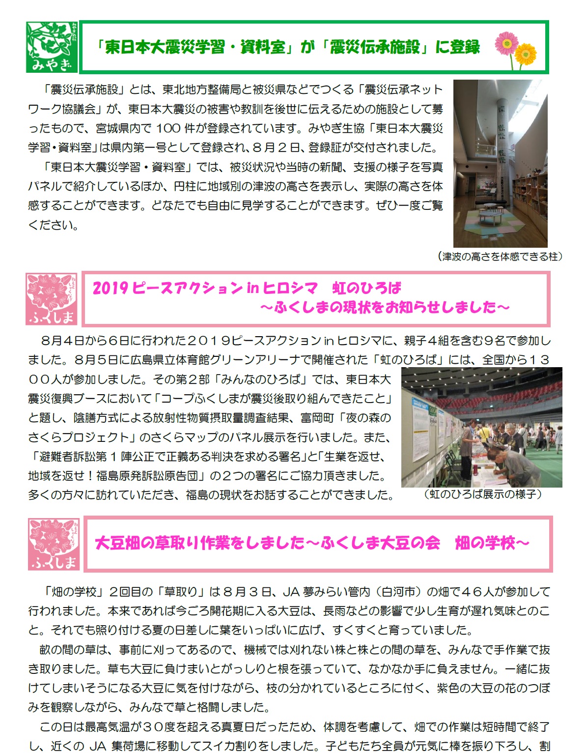> いわて・みやぎ・ふくしま便り 2019年度No.5