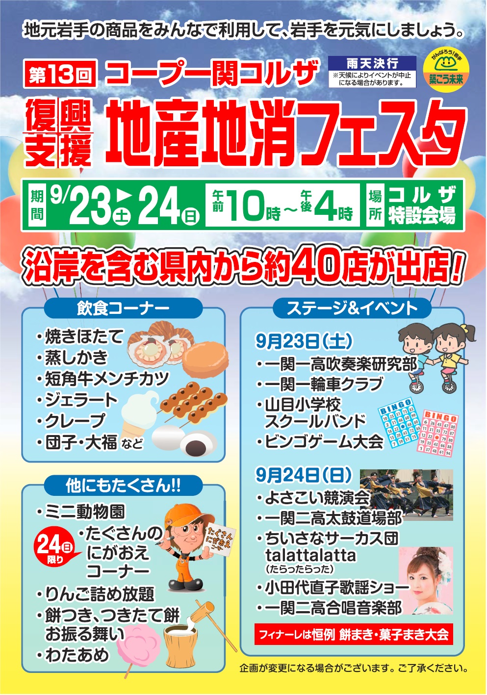 > 9月23日(土)・24日(日)★コープ一関コルザで「復興支援・地産地消フェスタ」を開催します!
