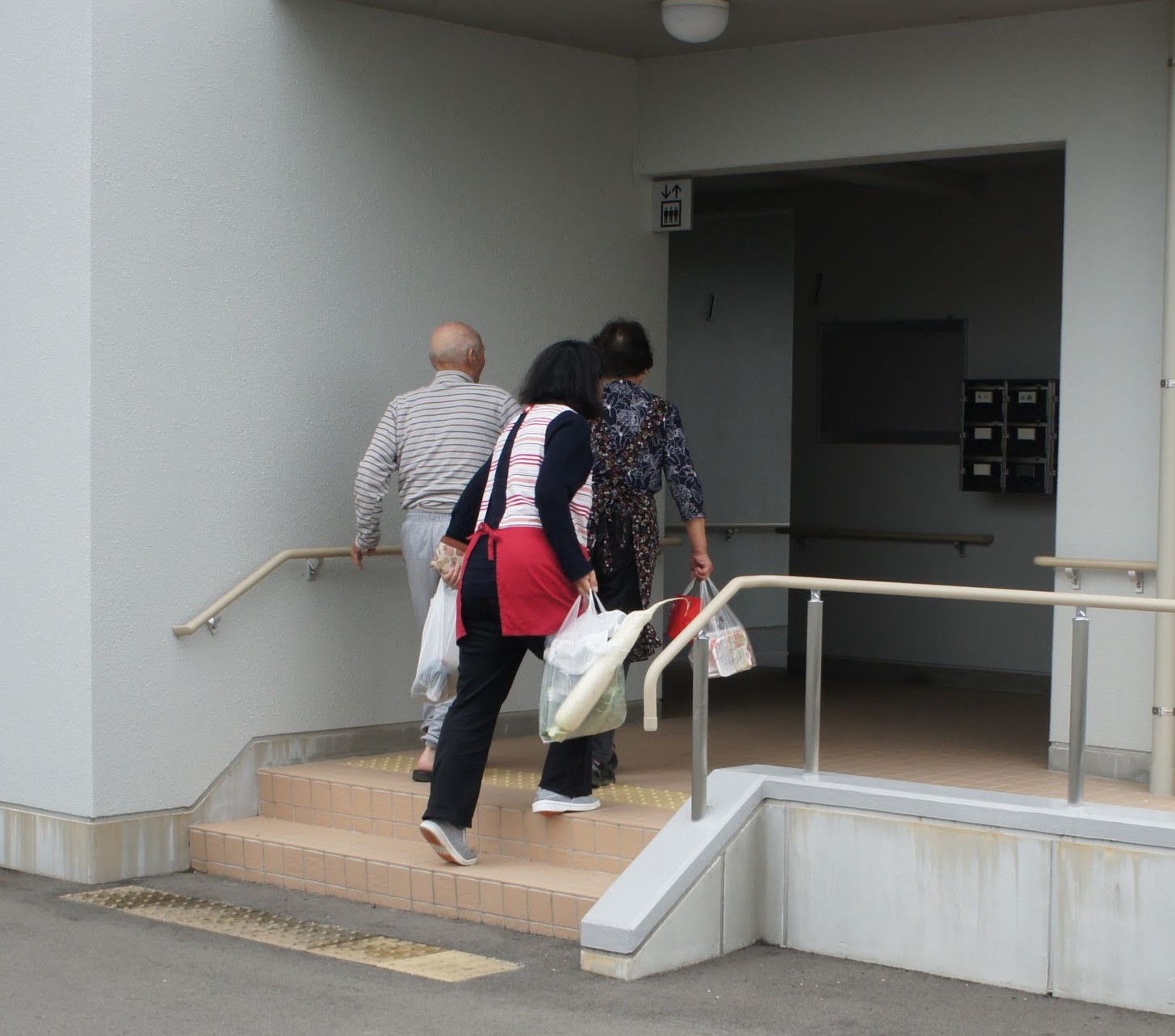 紹介している写真は、新しく販売場所になった陸前高田市の脇の沢団地。陸前高田市で最後に完成した災害公営住宅です。到着すると「待ってたよ!」「ほかの店の買い物バスも1週間に1回あるけど、これで買いだめしなくて済むからうれしい」とお買い物を楽しんでいました。
