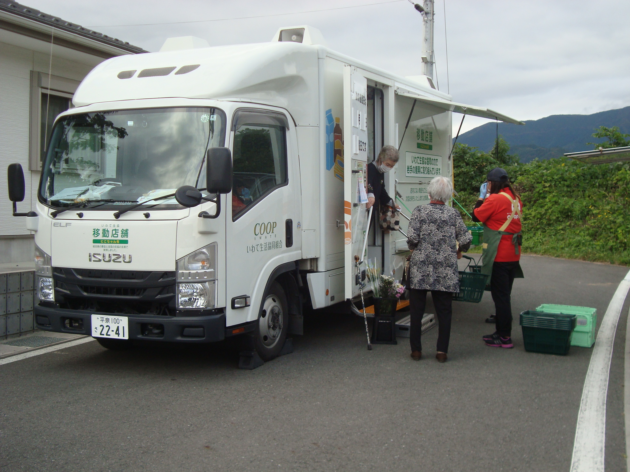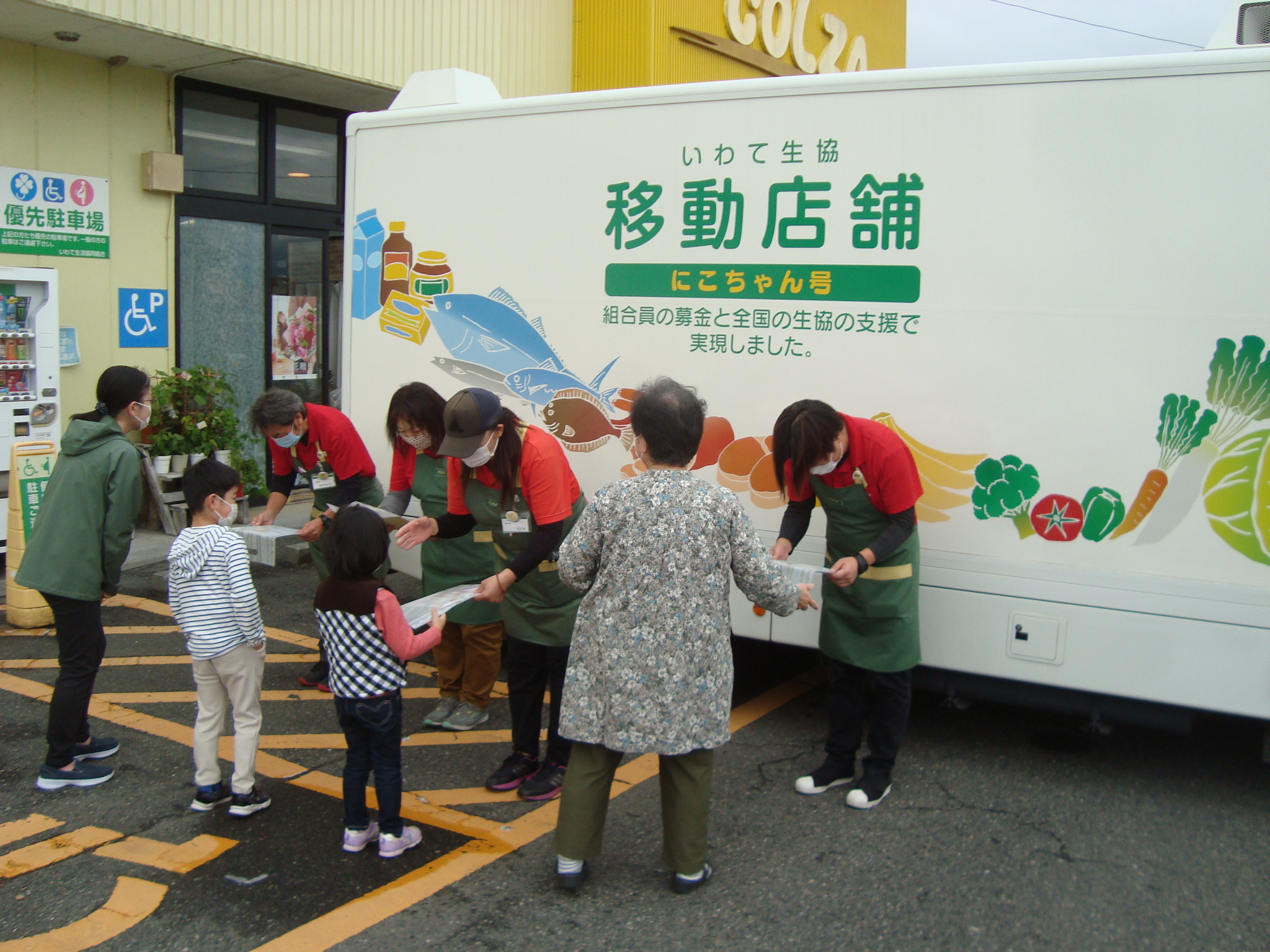 移動店舗「にこちゃん号」は、東日本大震災被災地の買い物支援として、ベルフ西町(宮古市)とコープ一関コルザ(一関市)から4台を運行してきました。運行開始から9年が経過し、復興が進んだことで利用が減少。20年度は1千万円の赤字でした。車両も老朽化していることから、コースを大きく見直し、移動店舗が特に必要な地域への運行に変更することになりました。