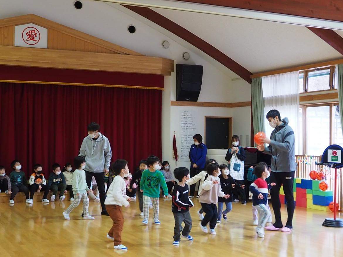 岩手ビッグブルズの選手と園児が参加。
