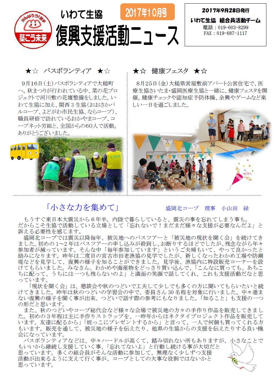 > いわて生協 復興支援活動ニュース◆2017年10月号