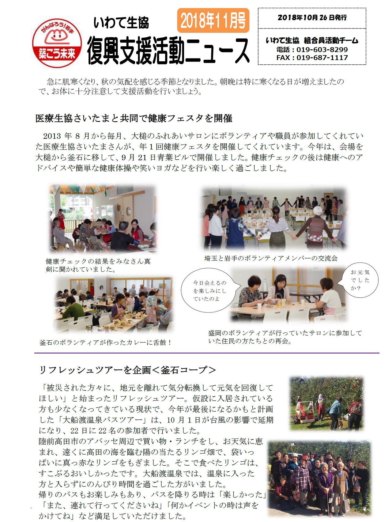 > いわて生協 復興支援活動ニュース◆2018年11月号
