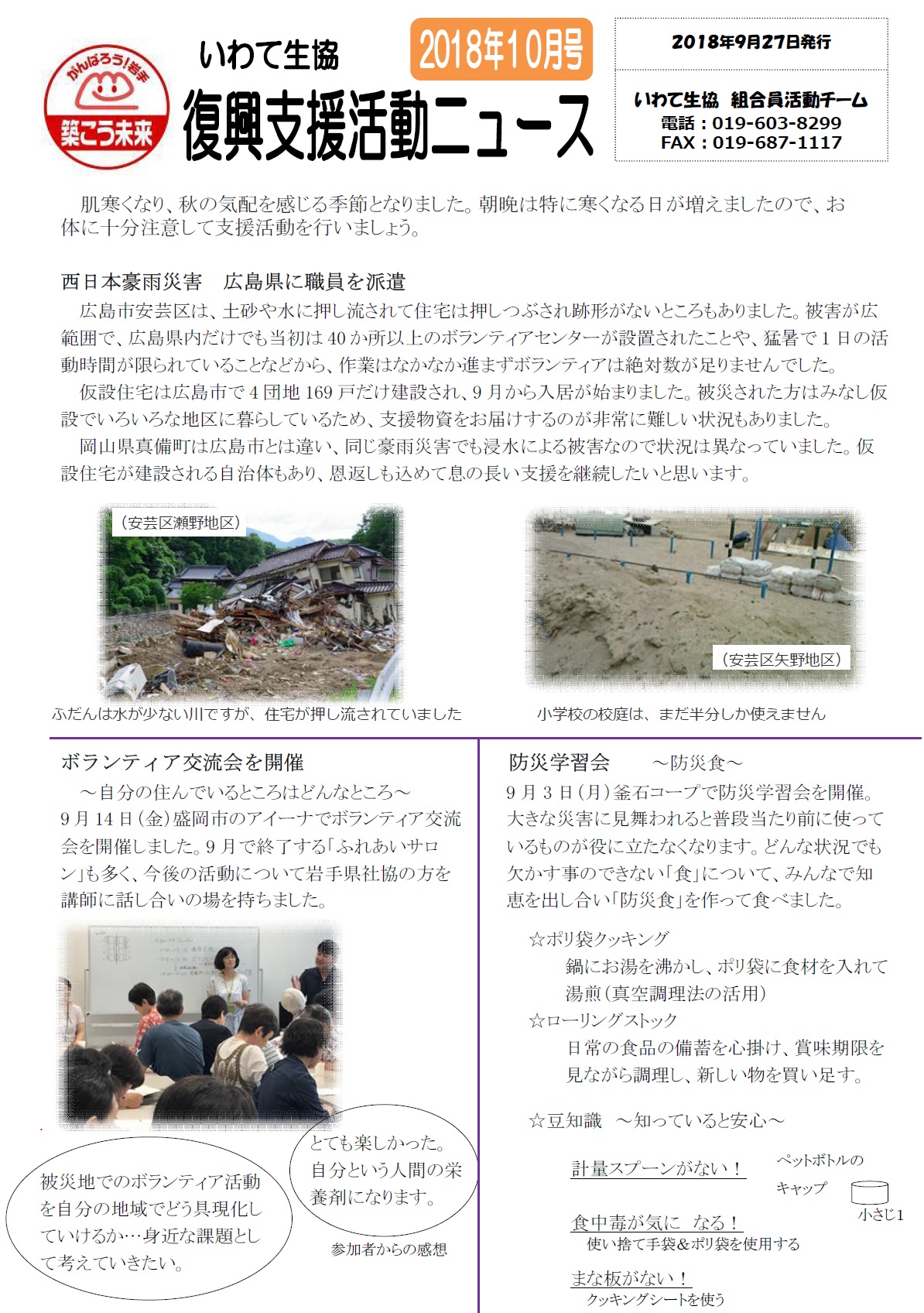 > いわて生協 復興支援活動ニュース◆2018年10月号