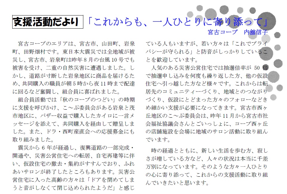 【支援活動だより】これからも、一人ひとりに寄り添って