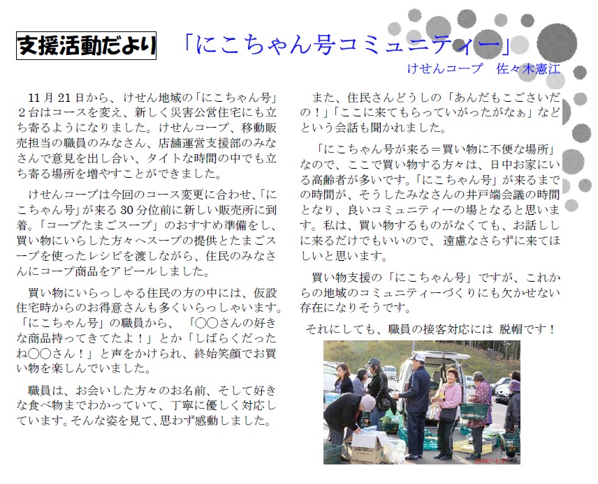 > 【支援活動だより】にこちゃん号コミュニティー