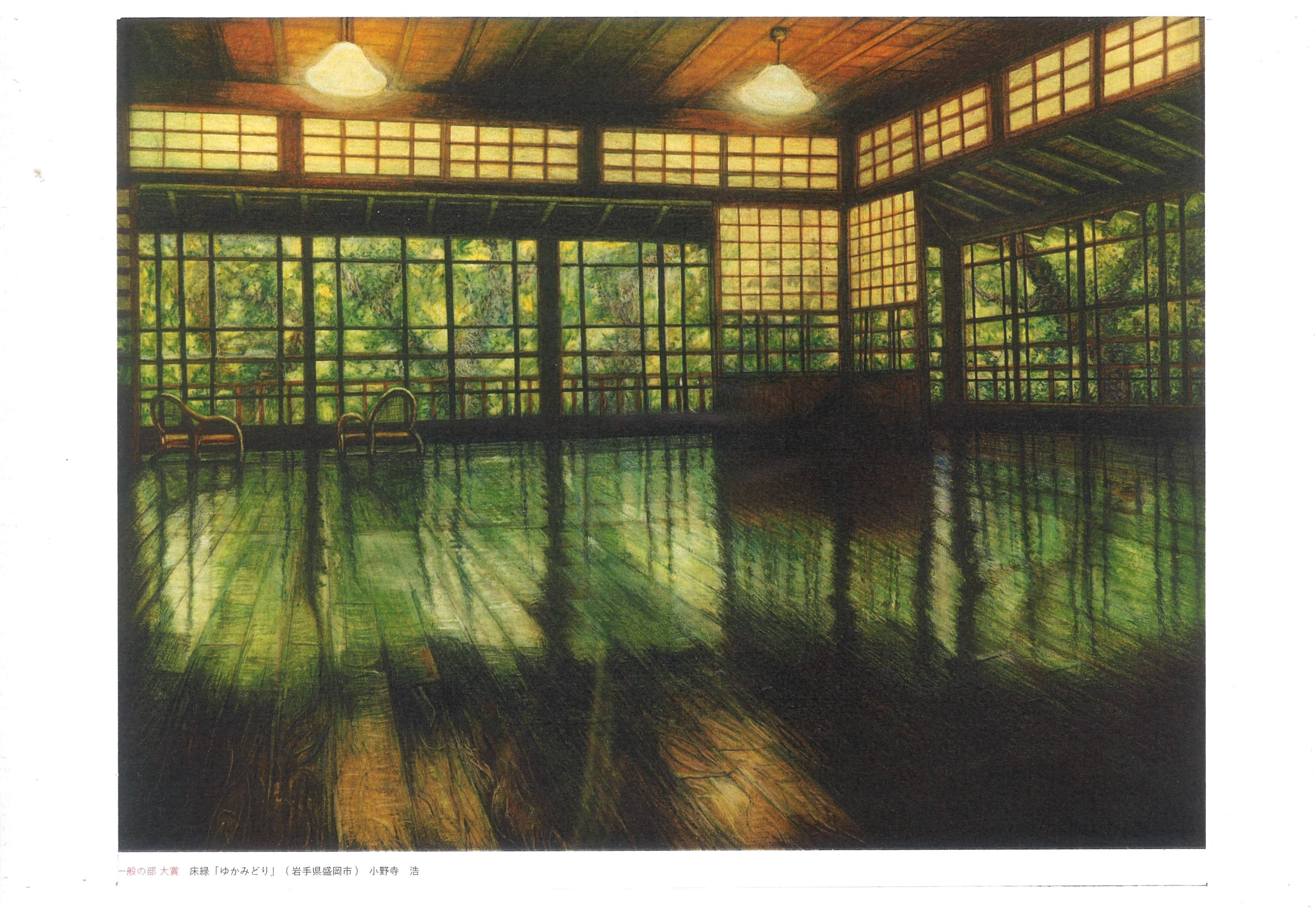 芸術の秋到来。 個展や作品展の案内を目にする頃となりました。 そんな季節を感じている日に嬉しいしらせが… 東北工業大学の「第17回東北の建築を描く展」の大賞に、盛岡市の小野寺 浩さんが描いた南昌荘の『床緑「ゆかみどり」』が選ばれました。 近々受賞作を見せてくださるそうです。 一足お先に画像をどうぞ。