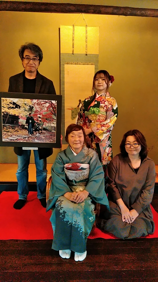 もみじの色づきもだいぶ進みライトアップが始まっています。 先日、2001年に南昌荘で婚礼写真を撮った伊藤ご夫妻が、成人式を迎えた娘の史織さんとおばあちゃまといらっしゃいました。 22年前の写真(お二人のご了解を頂き館内に飾らせていただいています。)と一緒にパチリ。 伊藤家の歴史に南昌荘も加えていただいたようでうれしいひとときでした。