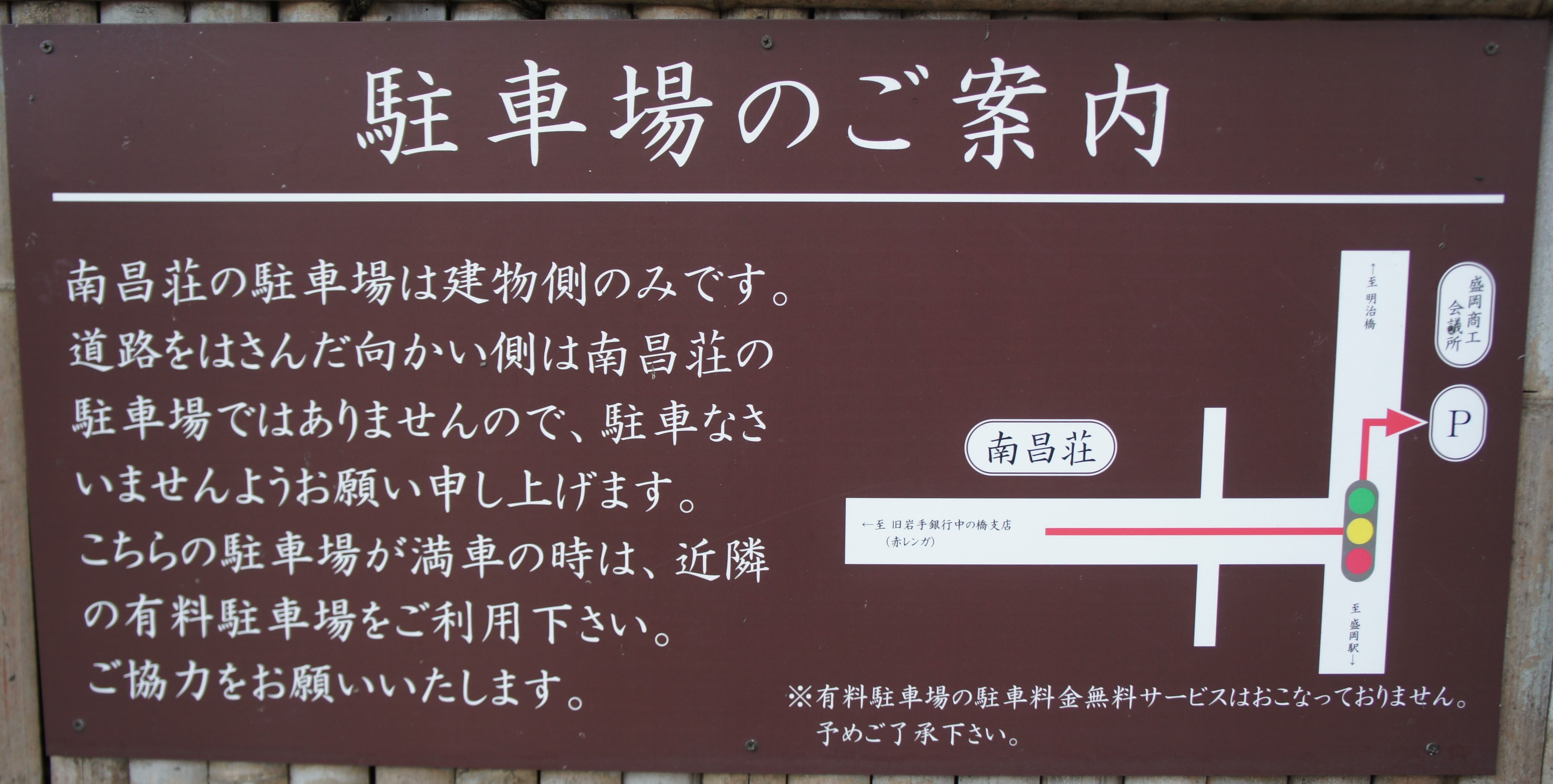 南昌荘へお越しのみなさまへ、駐車場のご案内です