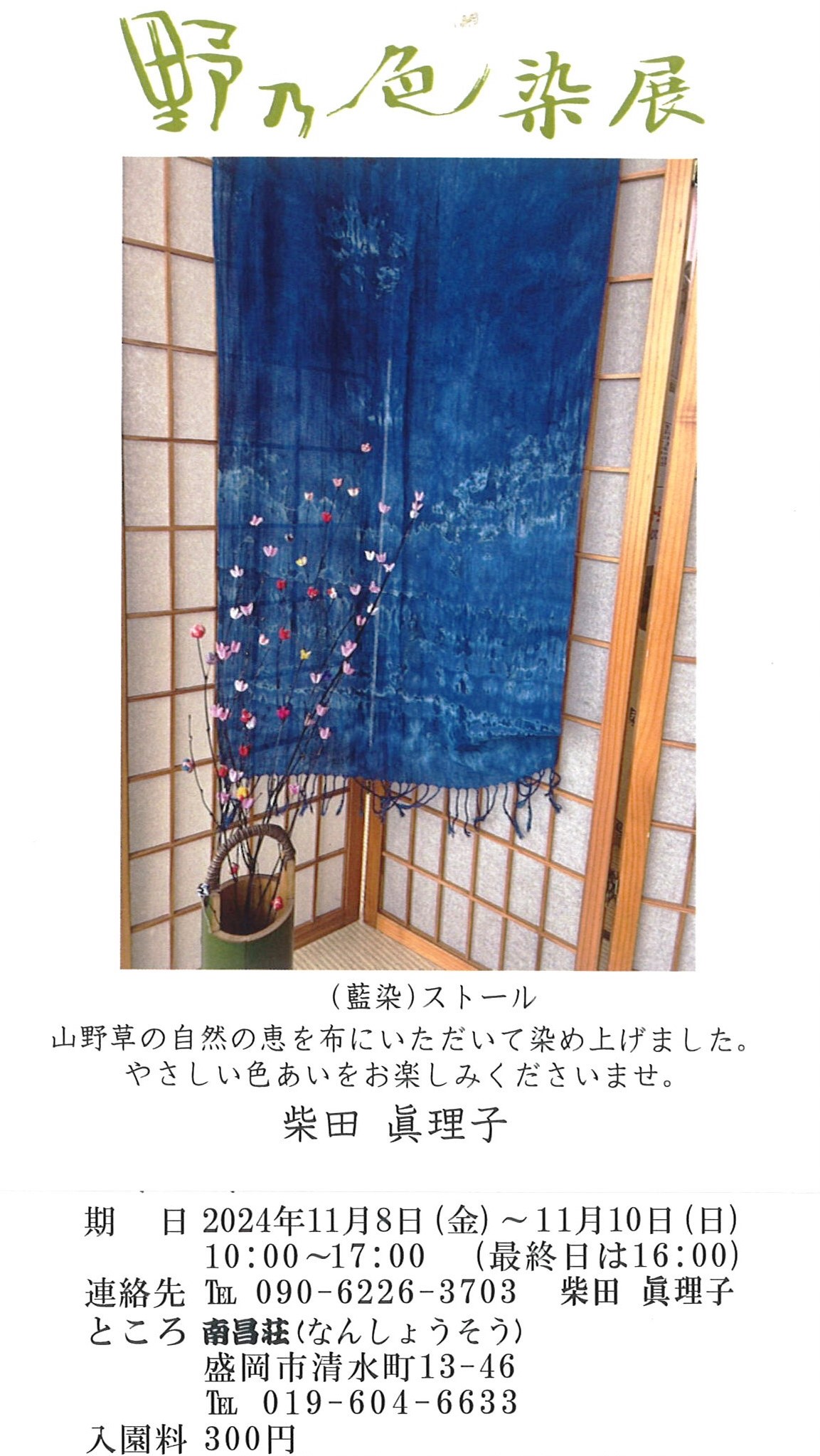 今週末は「季節のちりめん遊び展」や「野乃色染展」があります。