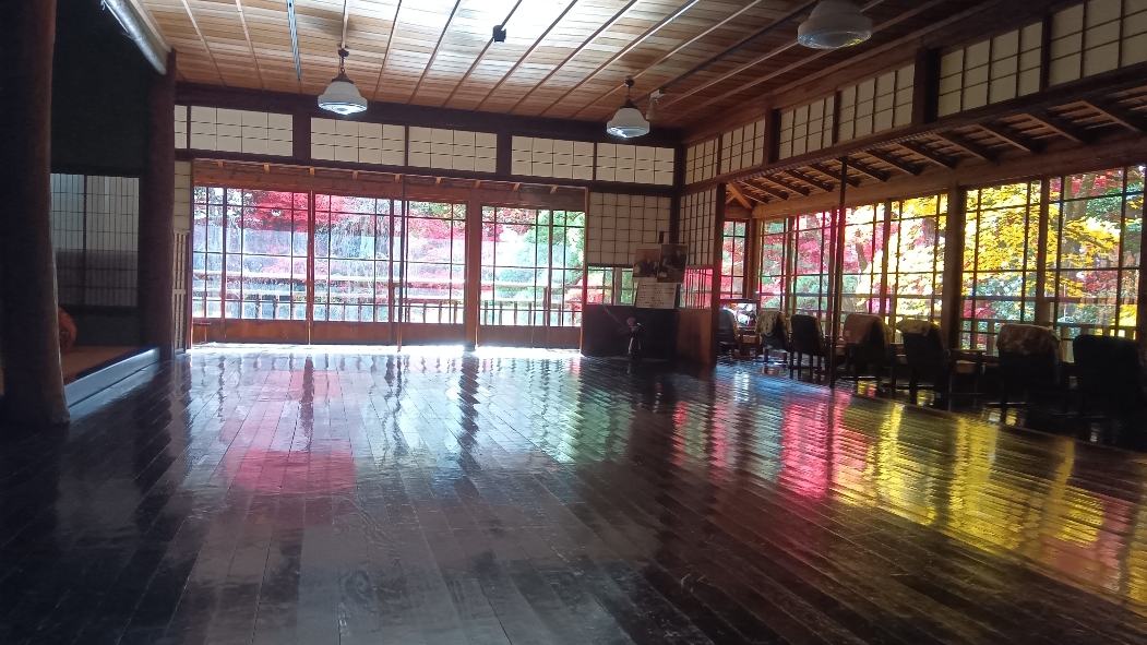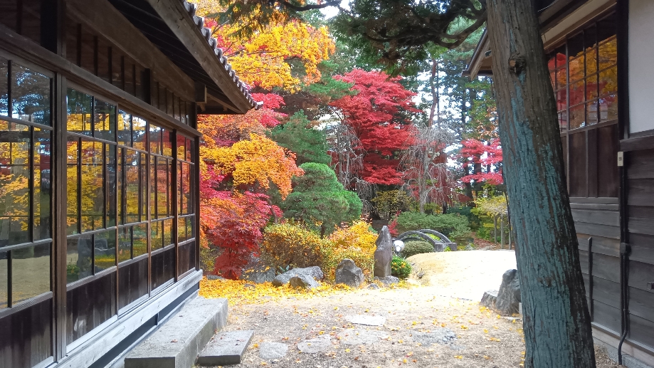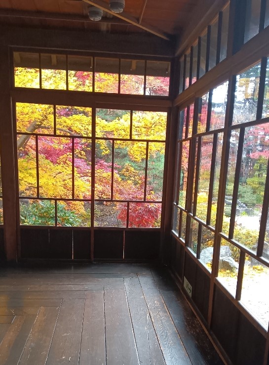 11/17(日)まで紅葉の庭園ライトアップにお越しの皆様ありがとうございました。 おかげさまで、昨年の1.5倍のお客様に楽しんでいただきました。 南昌荘は街の中にあるので、のんびり色づき、のんびり散ります。 写真は18日(月)の様子です。 明日20日(水)からは名残りもみじをどうぞ。