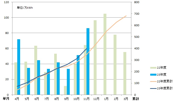 | 発電量 | 86万3,419kWh | 398万1,224kWh |