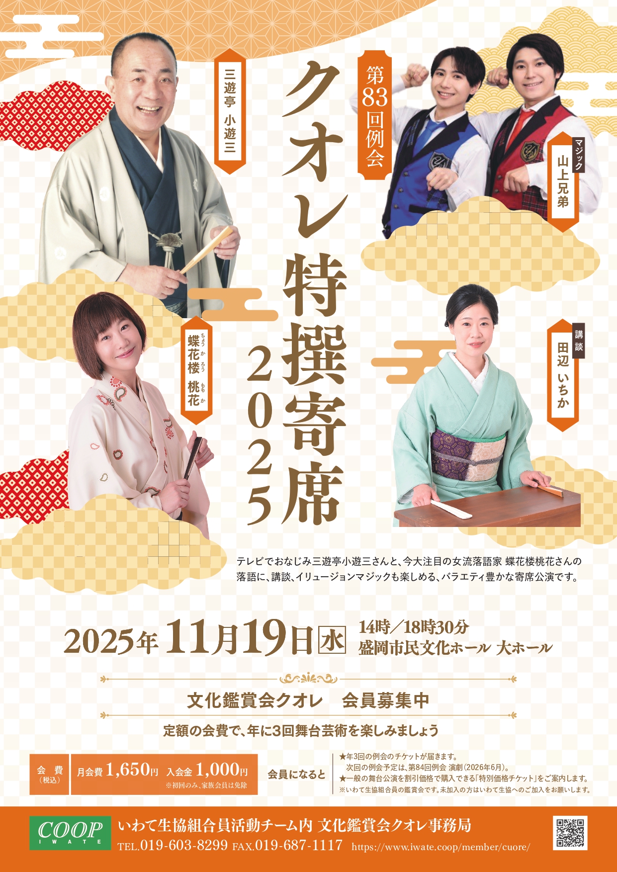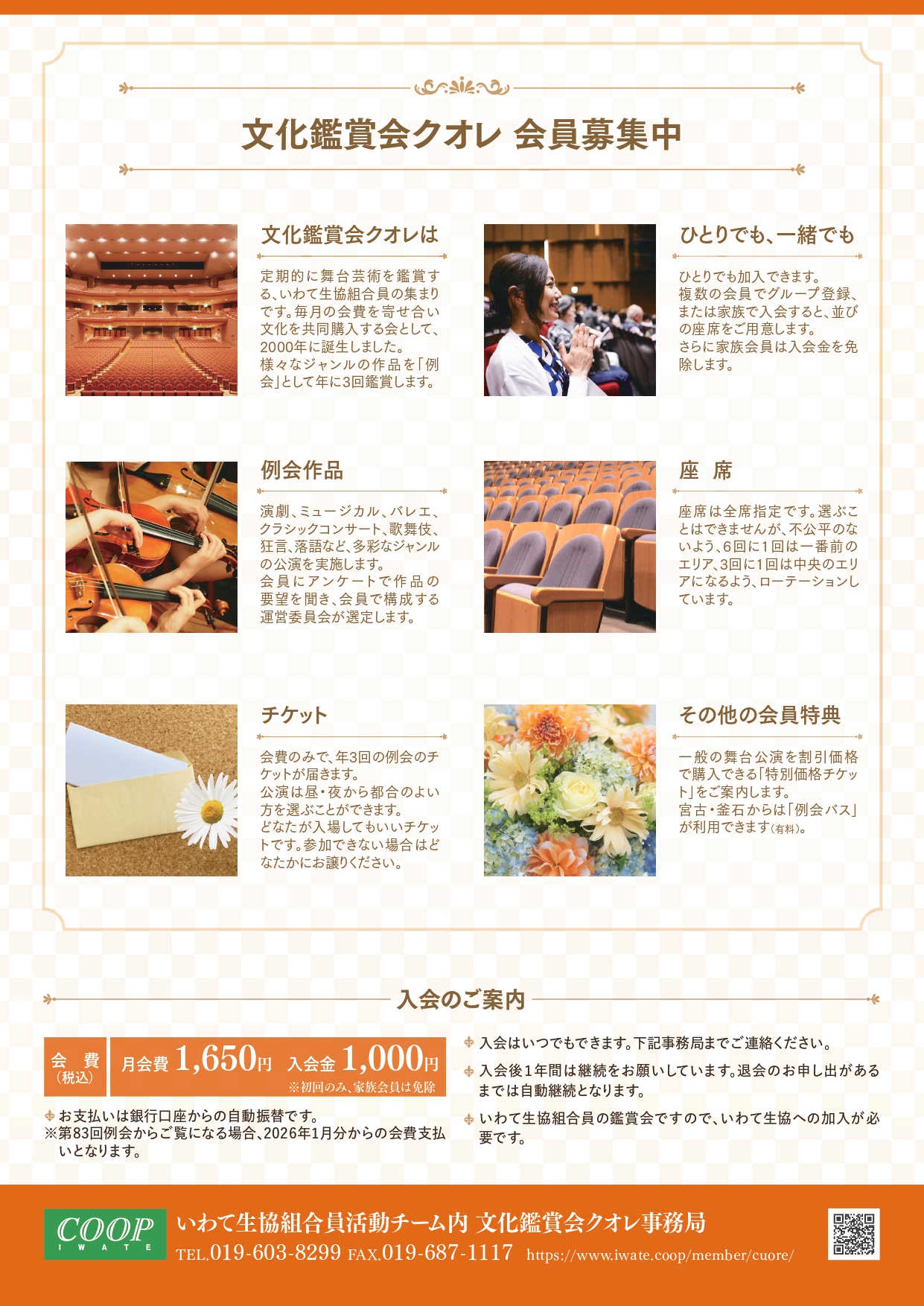 文化鑑賞会クオレはいわて生協組合員の文化鑑賞会です。