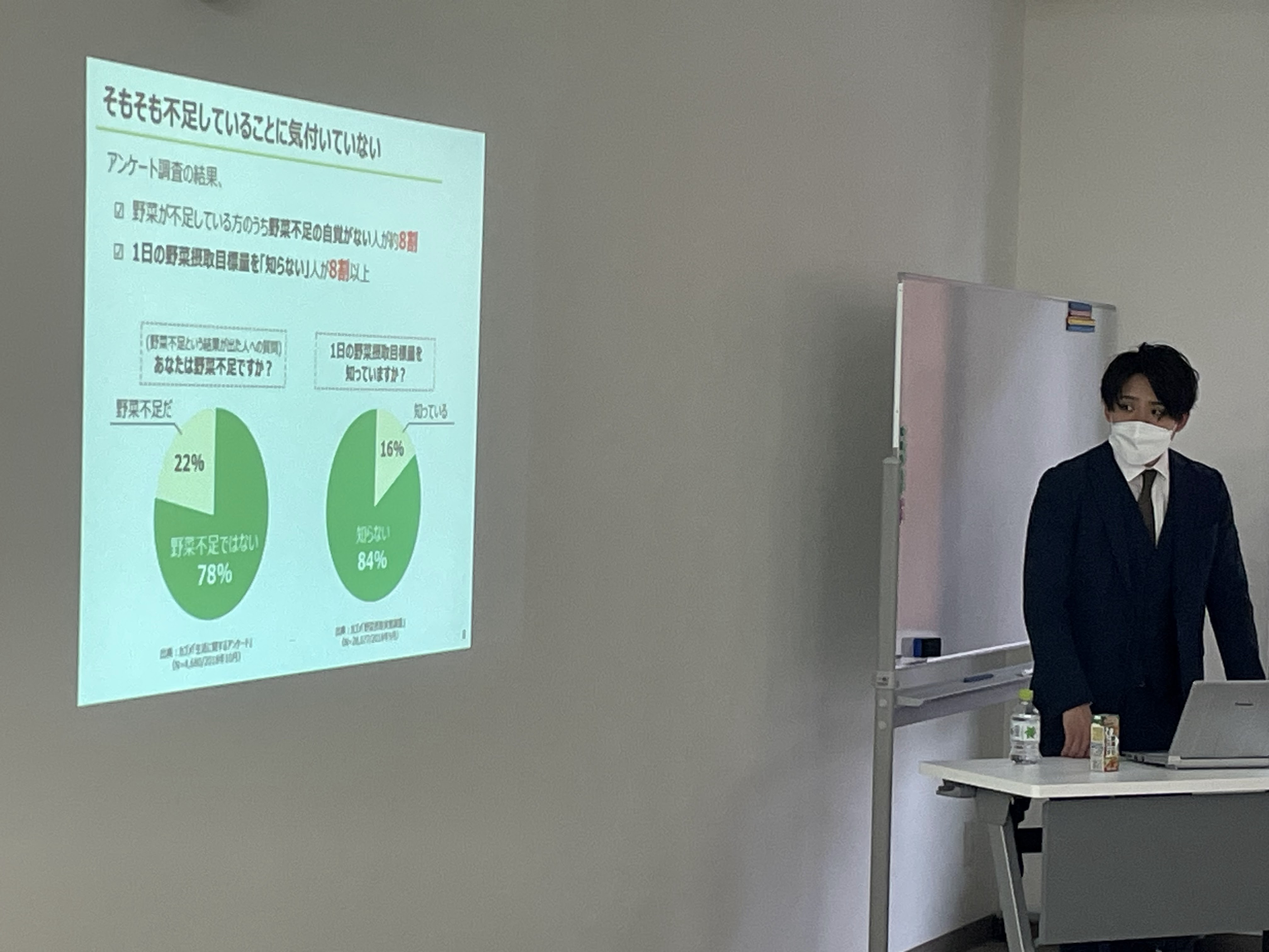 カゴメ様を講師に、野菜の摂取量と効果的な摂り方についてのお話をうかがいました。お話の後は、手のひらをセンターに当てると野菜の摂取量がわかる機械で、一人ひとり測定しました。
