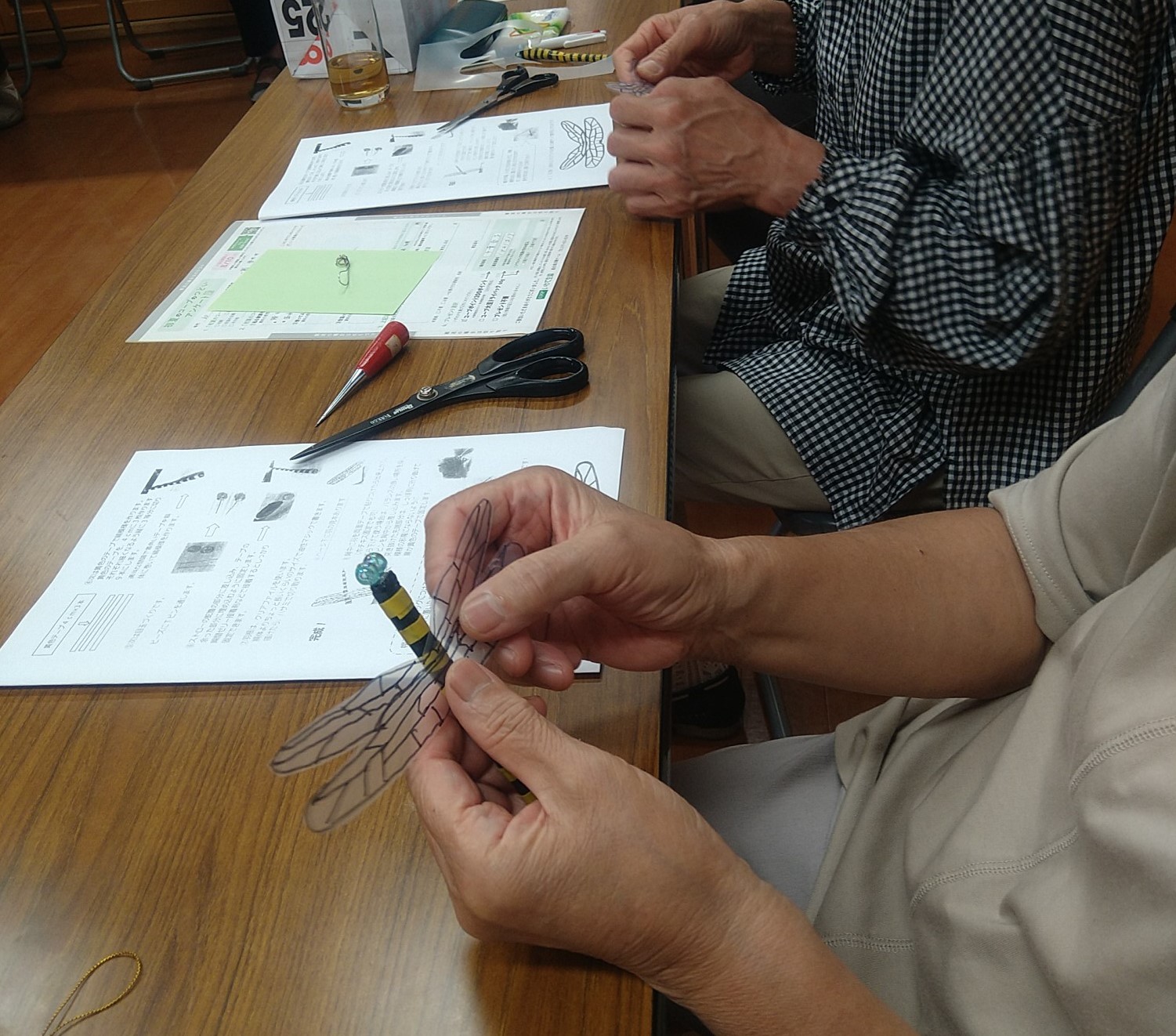 紙ゴミ箱はカレンダーを利用して、虫よけに良いらしいと話題の「オニヤンマ」はキットを用意して、講師の方に教わりながら作りました。