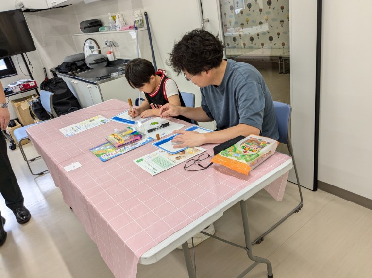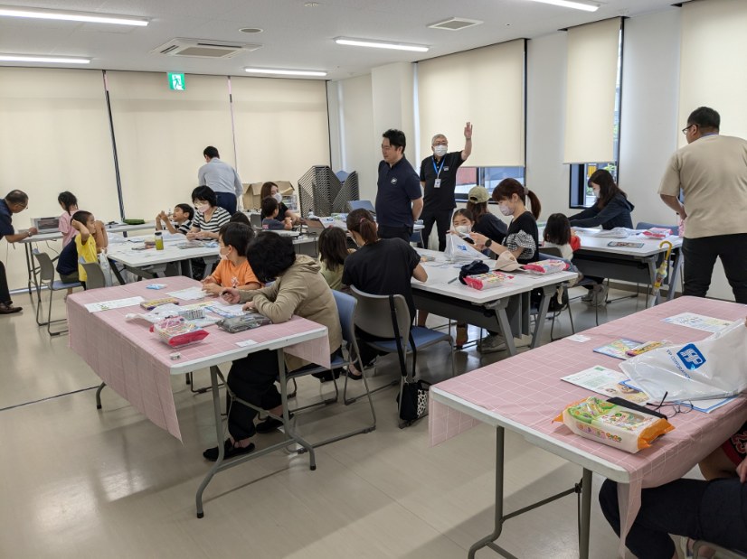プラスチックのふたを使ったキーホルダー作りを通して、リサイクルを楽しく学んでもらおうと、7月28日(日)、ベルフ向中野で「プラ板でキーホルダーをつくろう!」を開催、親子8組20人が参加しました。