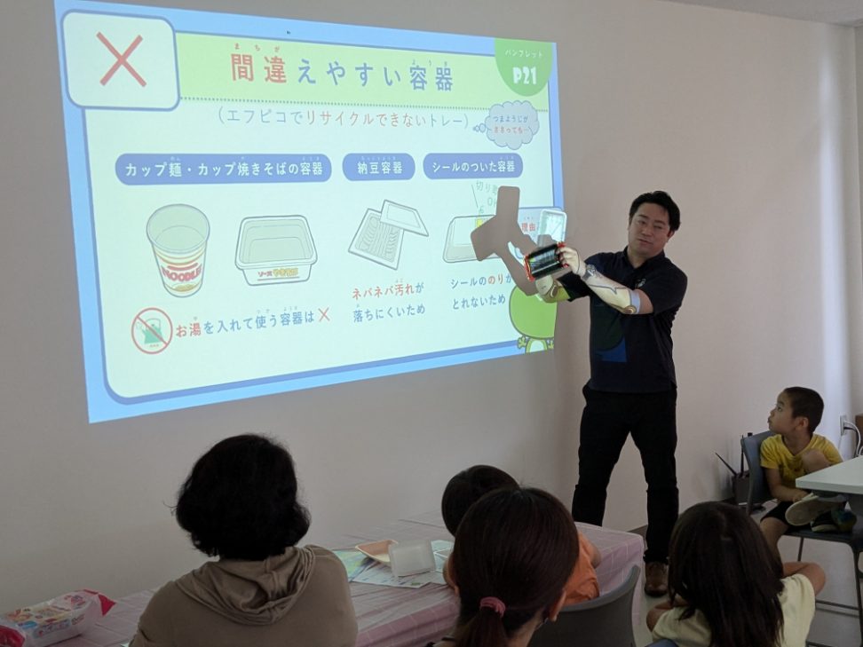 講師は、食品トレイのリサイクルメーカー「エフピコ」さん。