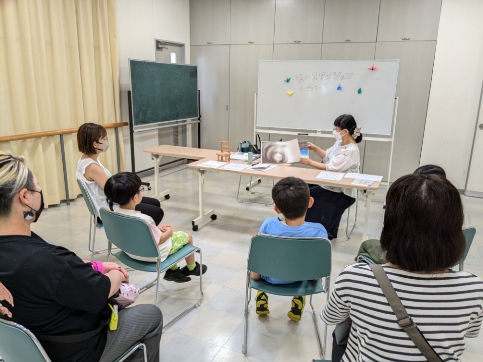 何気ない日常が、核兵器によってこわされてしまう恐ろしさが描かれていて、小学校低学年のお子さんたちも、静かにじっと聞いていました。