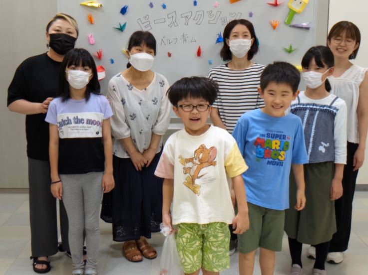 親子でクッキングを楽しみながら、平和について考えようと、8月6日、ベルフ青山で「親子クッキング」を開催。親子3組10人が参加しました。はじめに、8月6日の「広島平和記念日」にちなみ、ヒロシマの原爆に関する絵本の読み聞かせ。前段で、原爆の熱と爆風のすさまじさをわかりやすくお話いただいたあと、観賞した作品は「わたしのヒロシマ」(森本順子 著)。