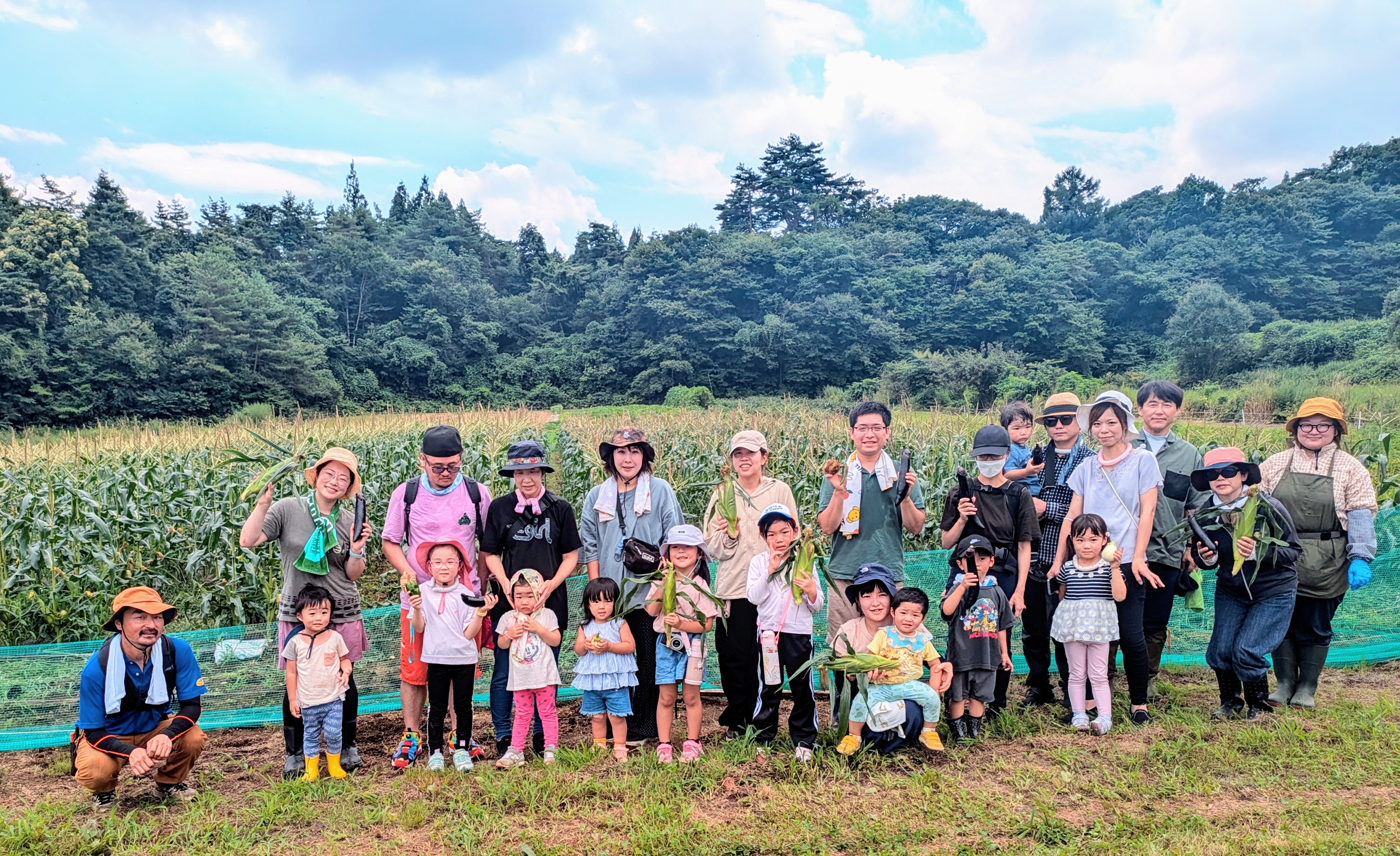 夏休みに親子で楽しんでほしいと地域に呼びかけ、8月4日、「牧野林産直会」の生産者、佐藤允さんの圃場(ほじょう)で夏野菜収穫体験会を行いました。当日は7組の親子(大人14人、子ども11人)が参加。