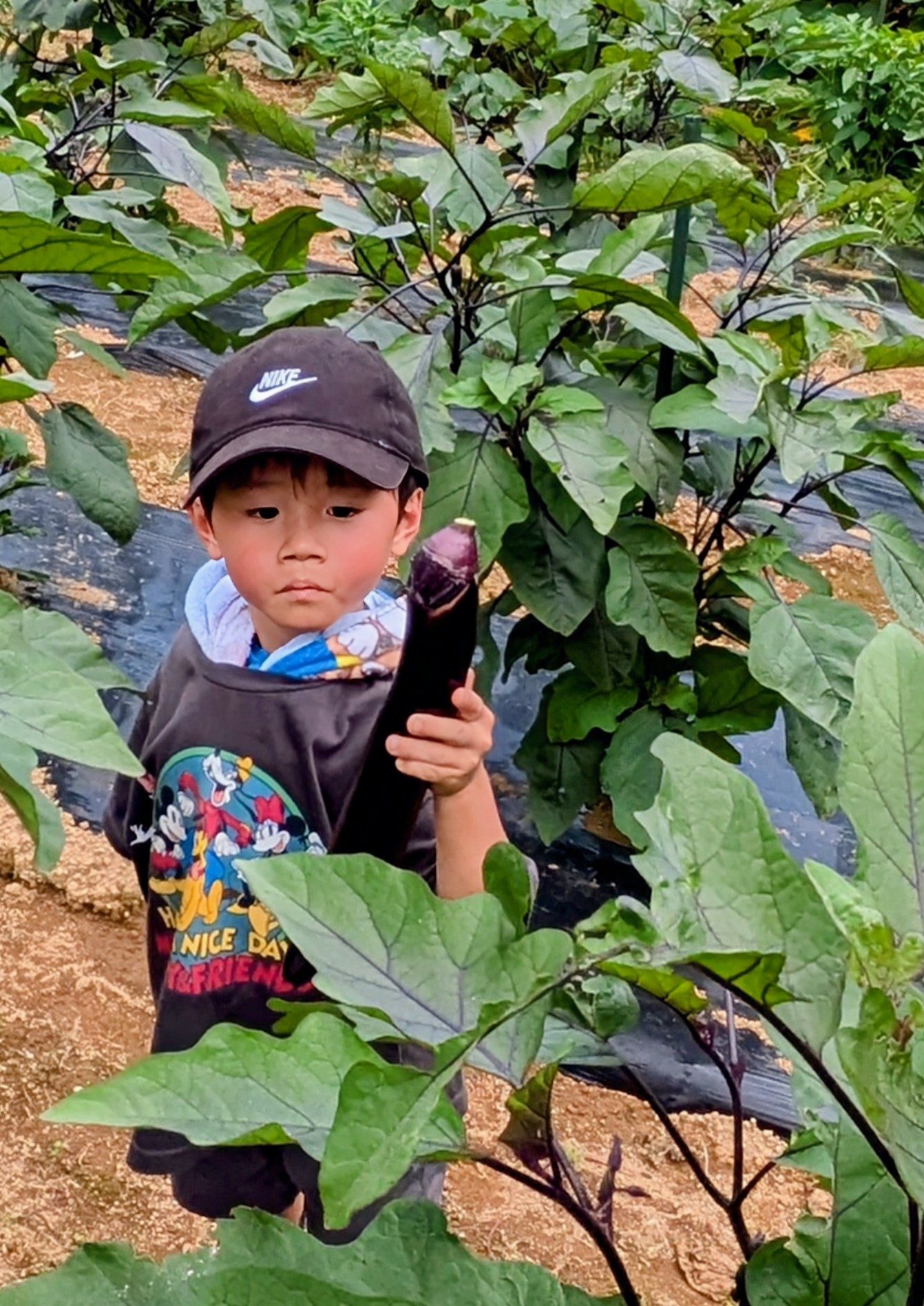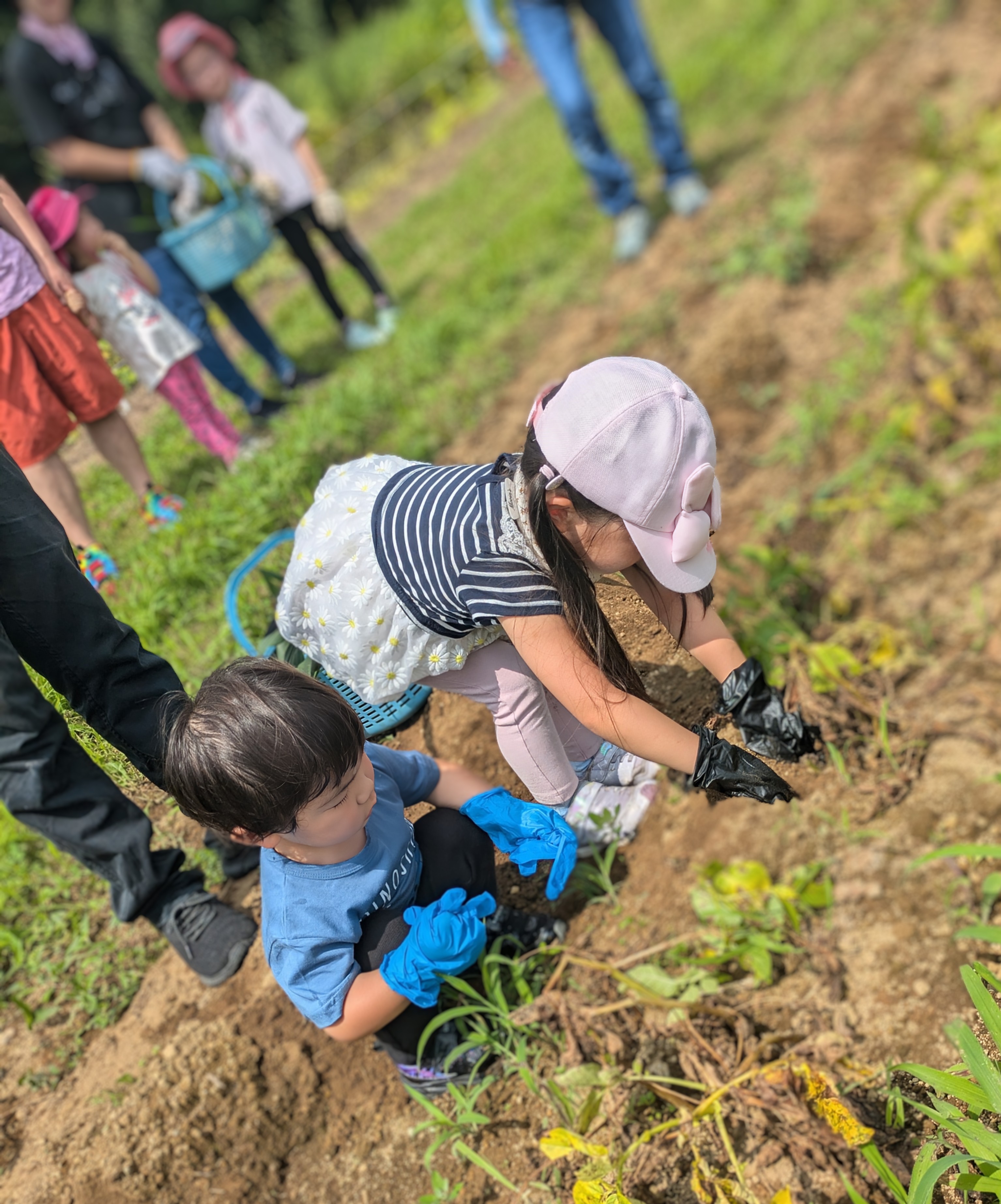 暑い中でしたが、とうもろこし、じゃがいも、なす、ししとうの夏野菜を、大人も子どもも楽しんで収穫しました。最後には、おいしい「滝沢スイカ」もごちそうになり、楽しい時間を過ごしました。