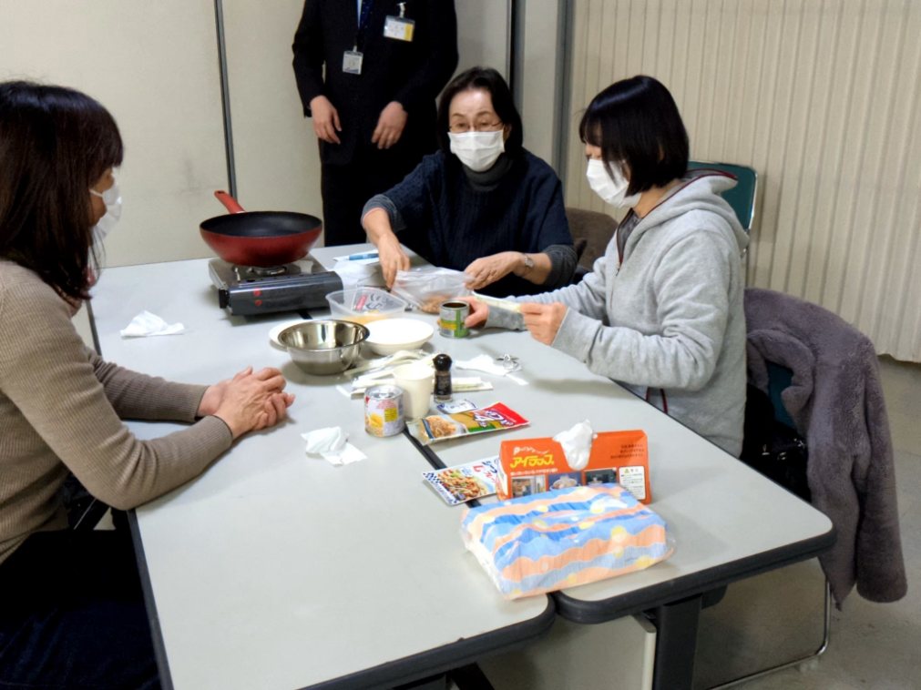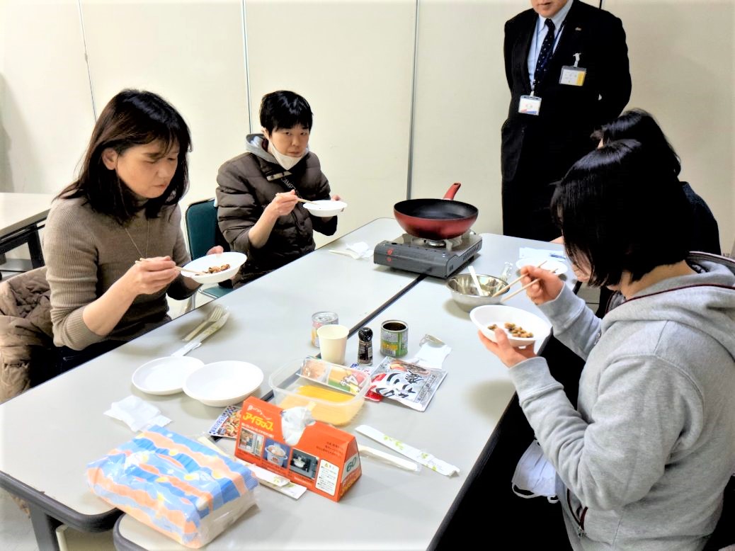 「ローリングストック」と、災害時に使える調理について学びました。