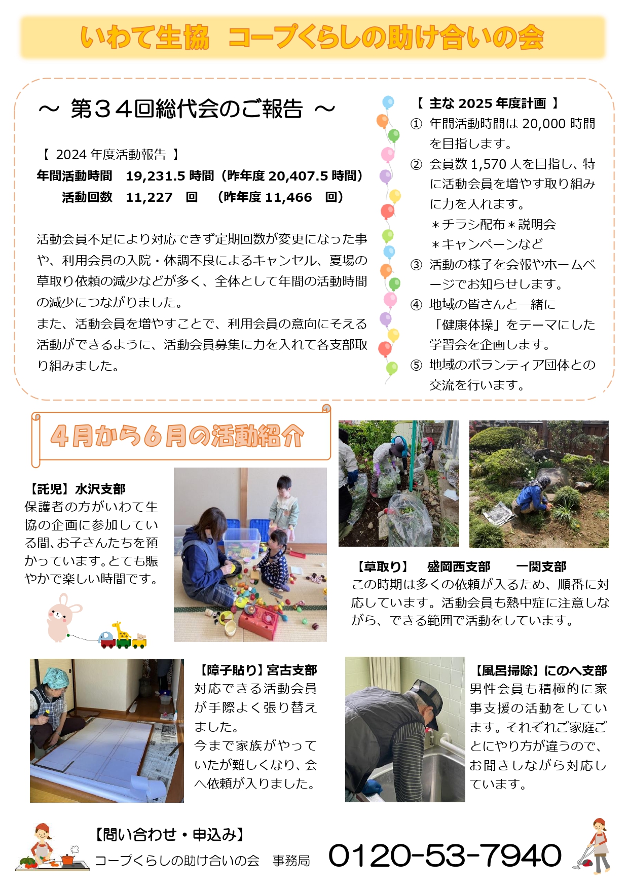 > コープくらしの助け合いの会総代会の報告&4~6月の活動報告